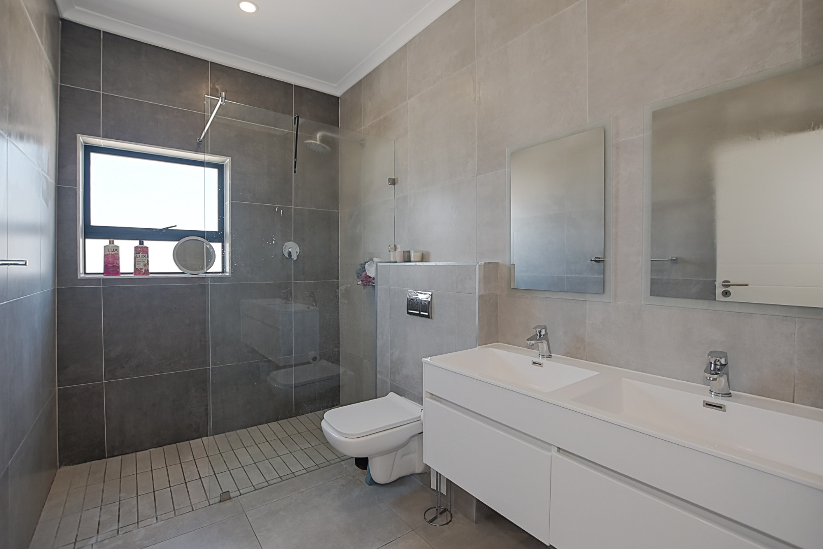 - Bathroom 1 Tiled Floors, Main en Suite, Shower, Toilet and Basin