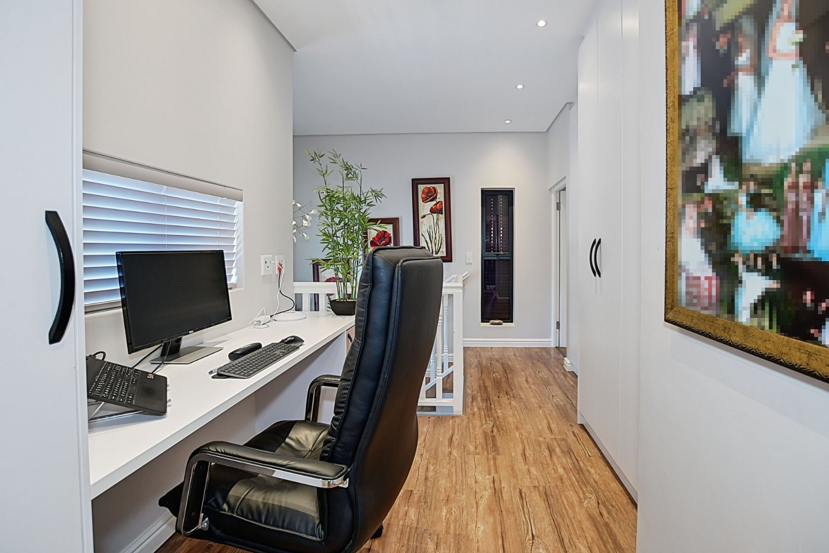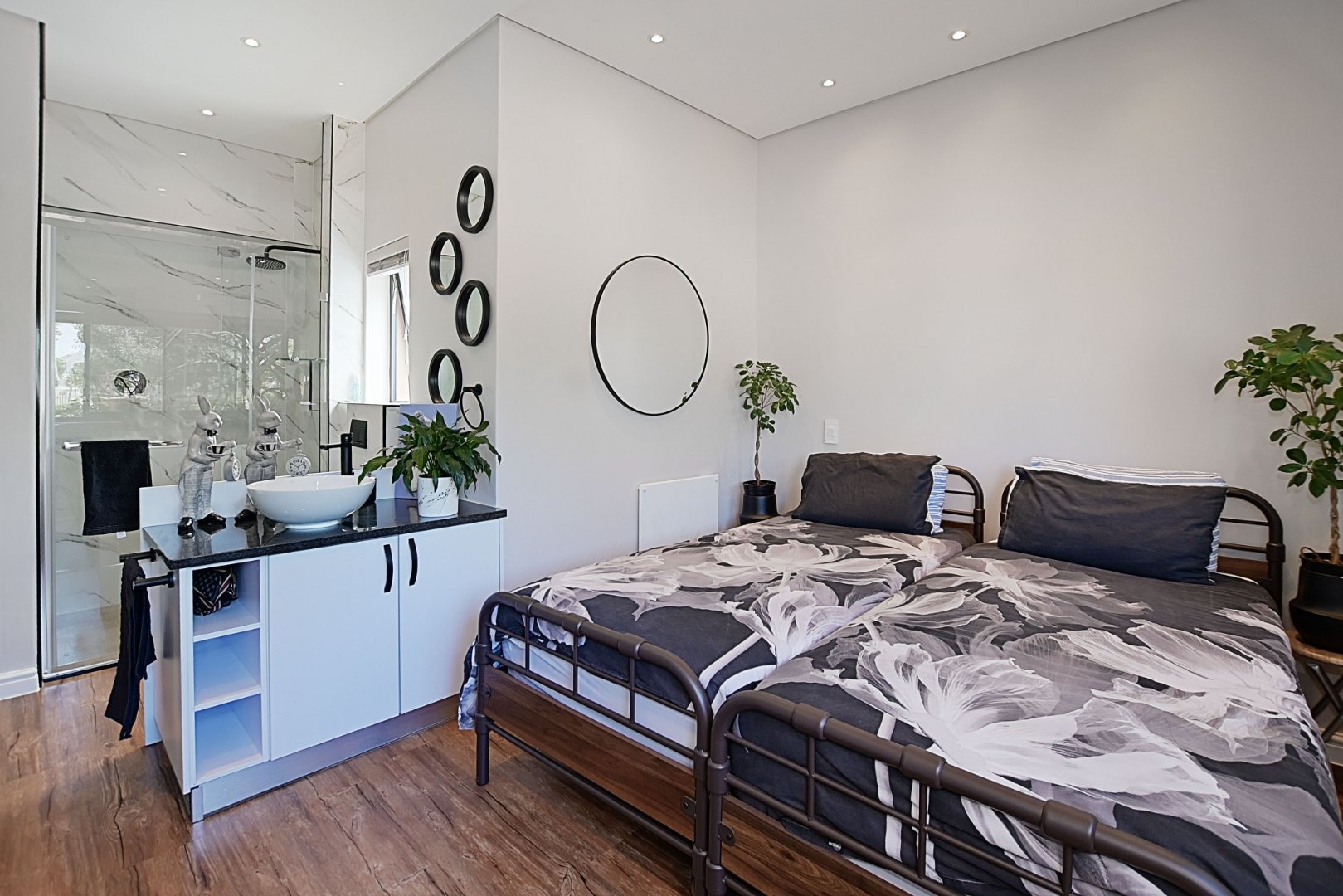 Set within the prestigious Sagewood Security Estate in Sandown, this iconic three-bedroom residence offers refined executive living just a short drive from the scenic Blouberg beachfront, with breathtaking views of Table Mountain.