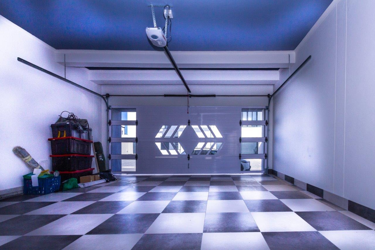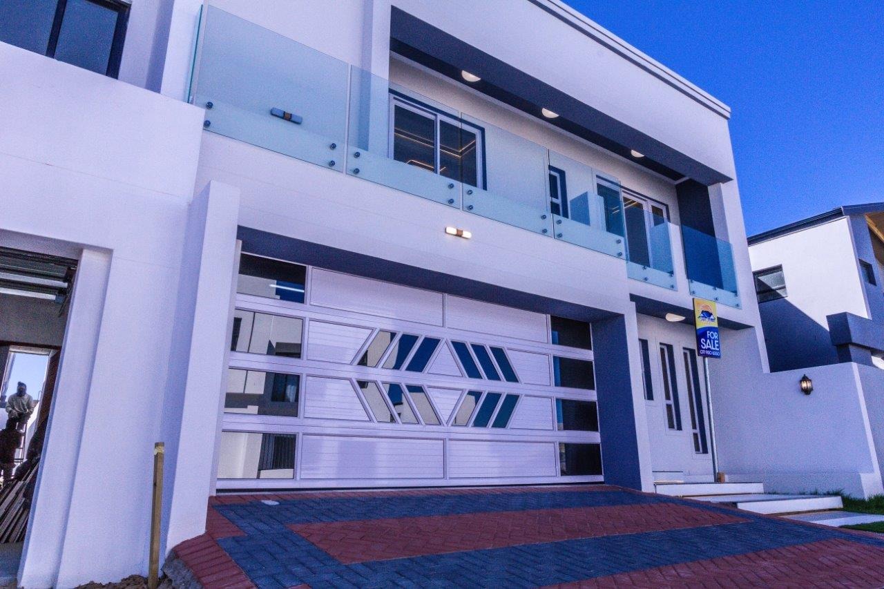 • Trendy Aluminium and Glass automated Garage door with roll through for boats and inter-leading access