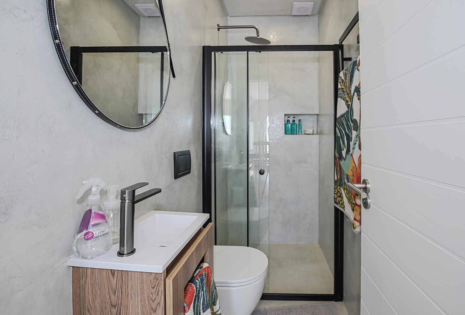 shower, basin and toilet.