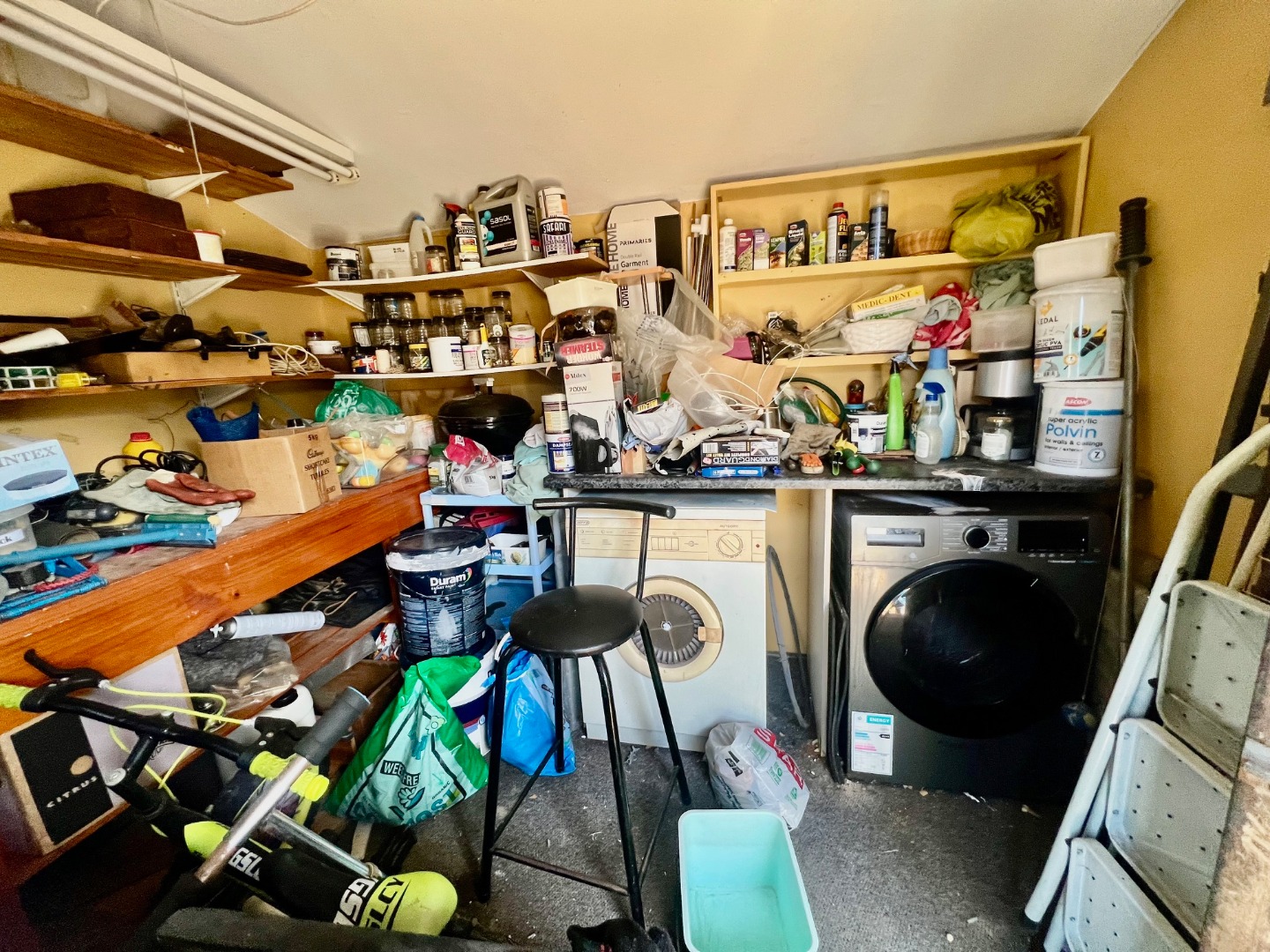 Single remote garage currently used as an office. Security gates, spanish burglar bars, wall spikes, alarm system and intercom system. Outside shed plumbed as a laundry.