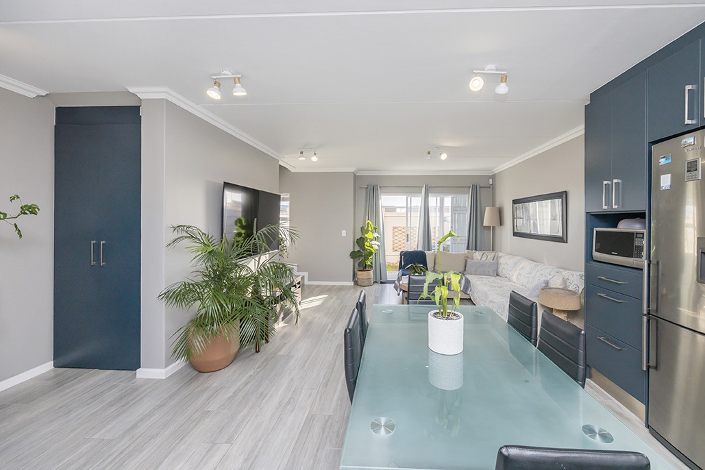 The open-plan living and dining area seamlessly flows to a private garden through sliding doors, offering an inviting space for entertaining or quiet relaxation. Whether hosting guests or enjoying a quiet evening, this home offers the perfect setting.