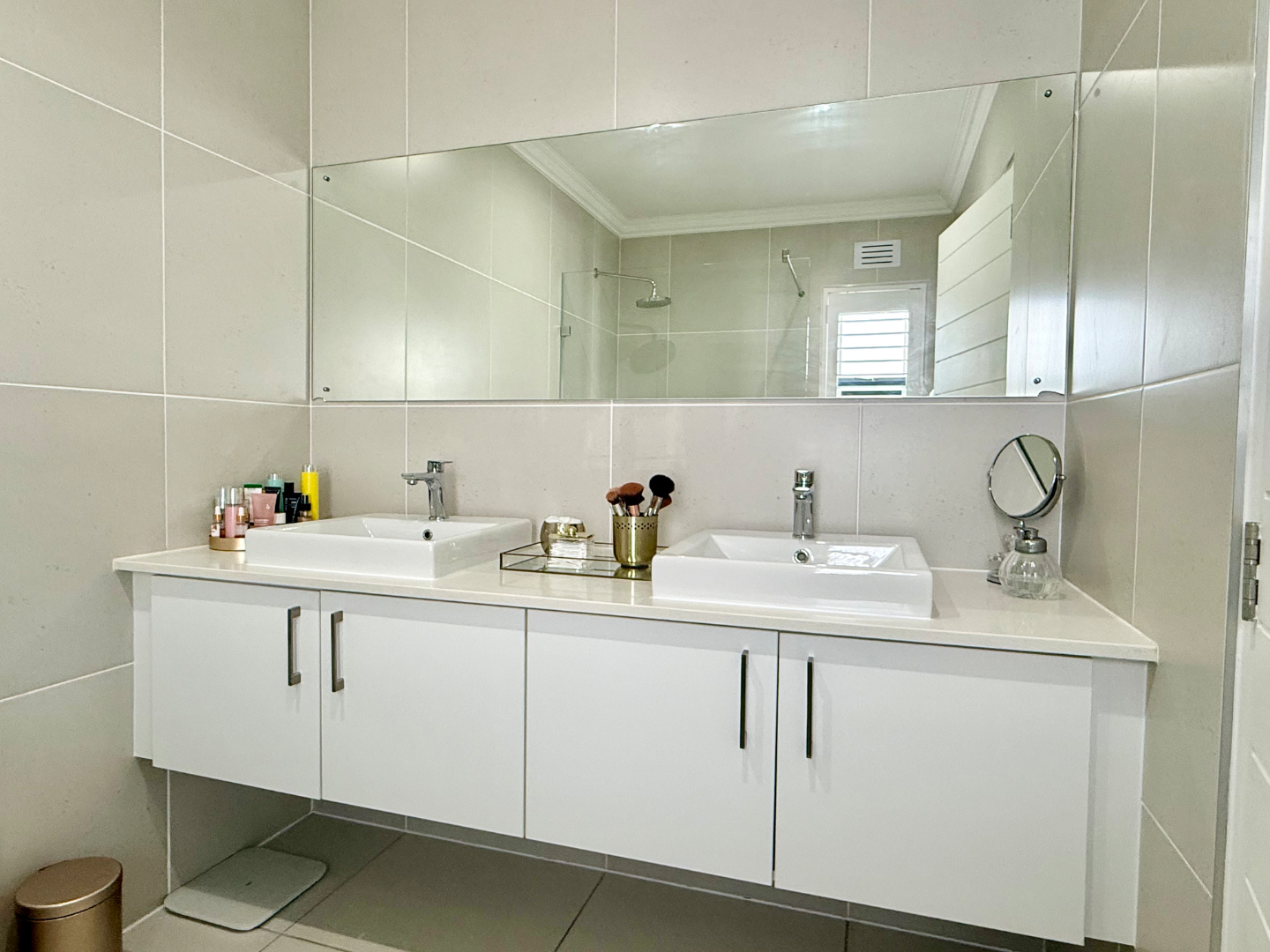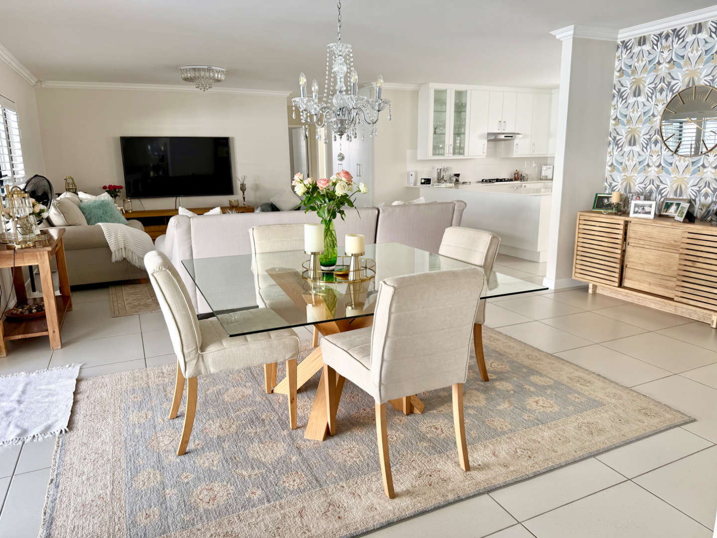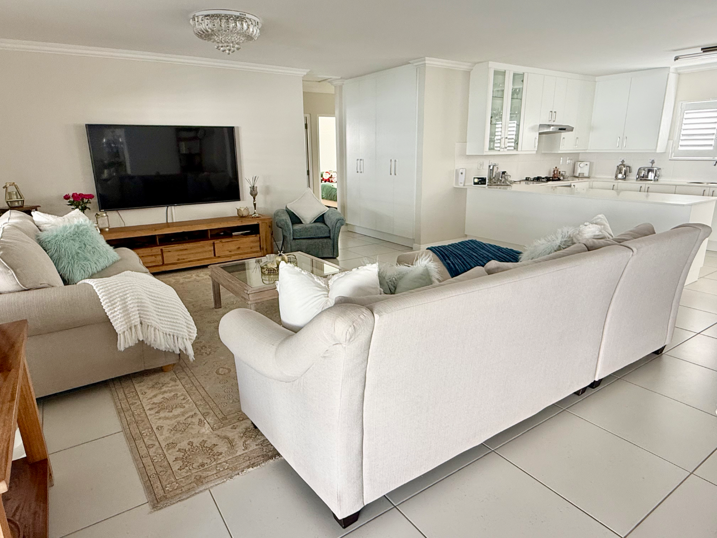 As you step into this gorgeous home you are greeted with style and elegance. The delightful, sunny and spacious open plan livings rooms are seamlessly connected to the light and bright kitchen which boasts with plenty of cupboards, space for a double door fridge and scullery area with plumbing to two appliances. Extra counter space for those Saturday morning family breakfasts.