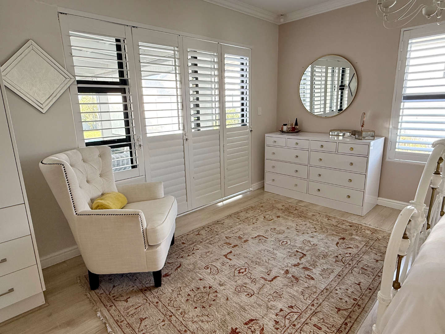Beautiful American Shutters are fitted through out along with an alarm system, double automated garage with direct access to the home and a sliding gate over the driveway.