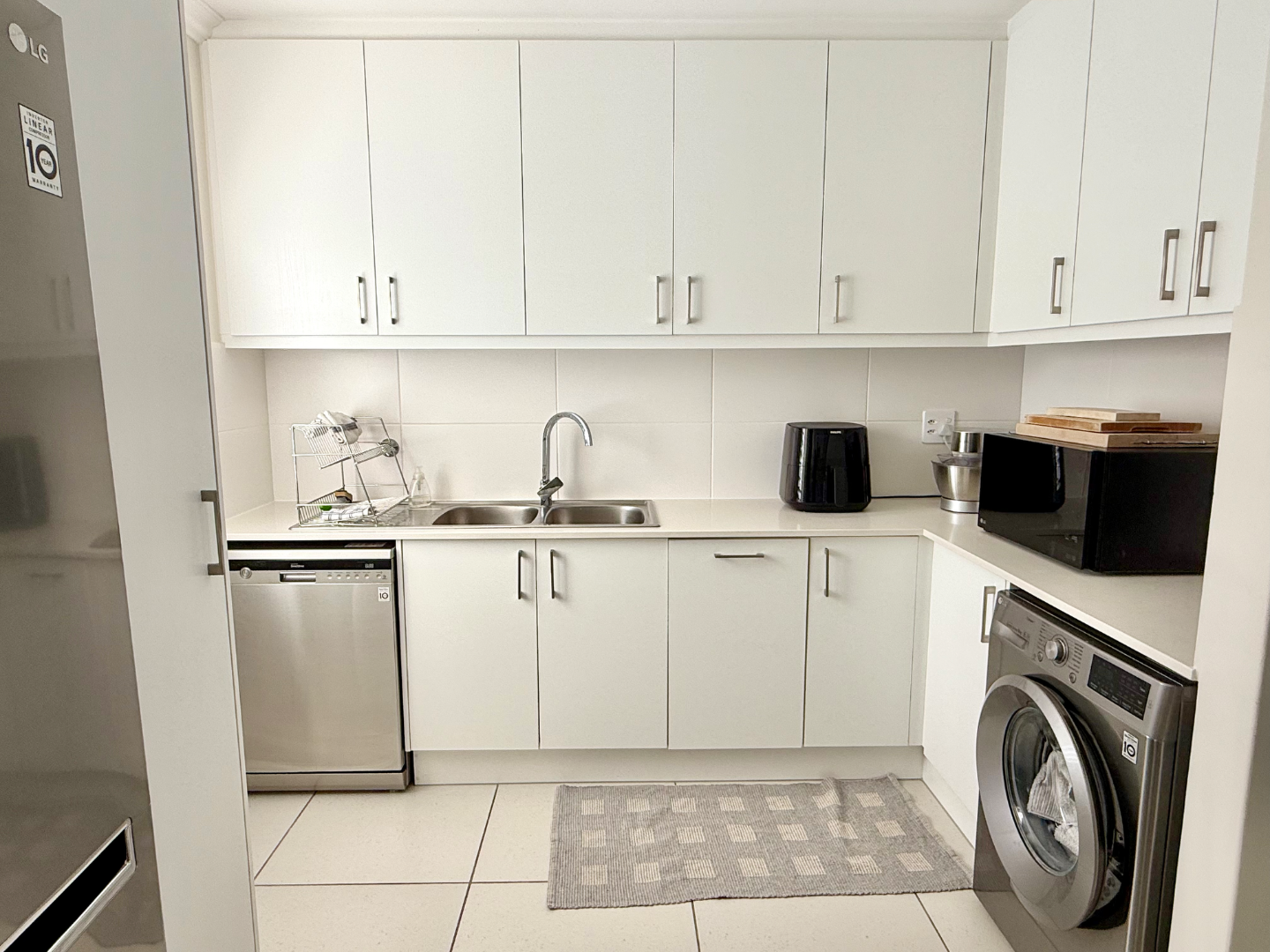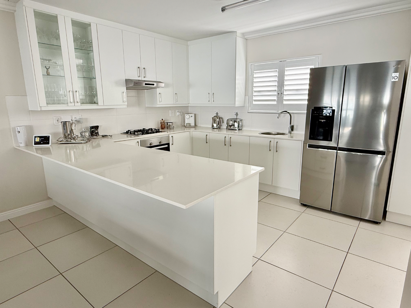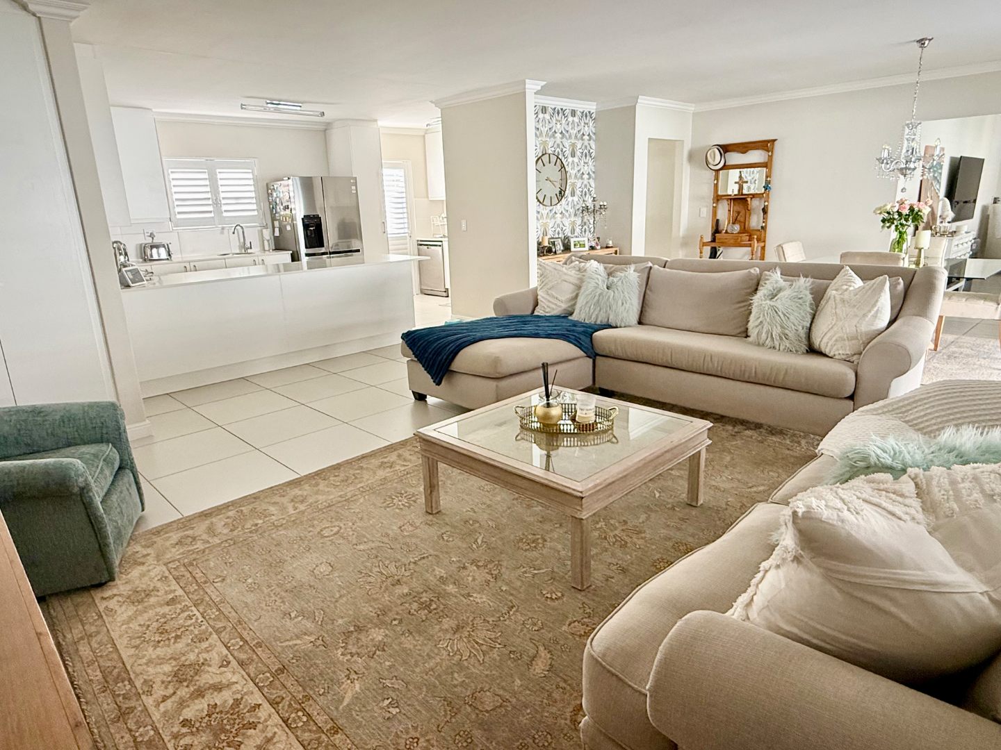 As you step into this gorgeous home you are greeted with style and elegance. The delightful, sunny and spacious open plan livings rooms are seamlessly connected to the light and bright kitchen which boasts with plenty of cupboards, space for a double door fridge and scullery area with plumbing to two appliances. Extra counter space for those Saturday morning family breakfasts.
