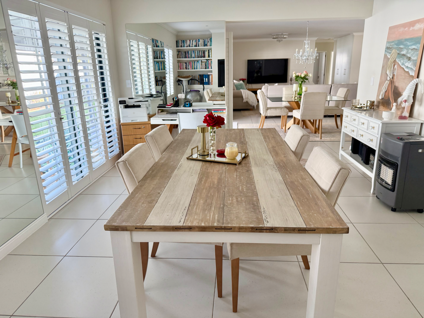 Beautiful American Shutters are fitted through out along with an alarm system, double automated garage with direct access to the home and a sliding gate over the driveway.