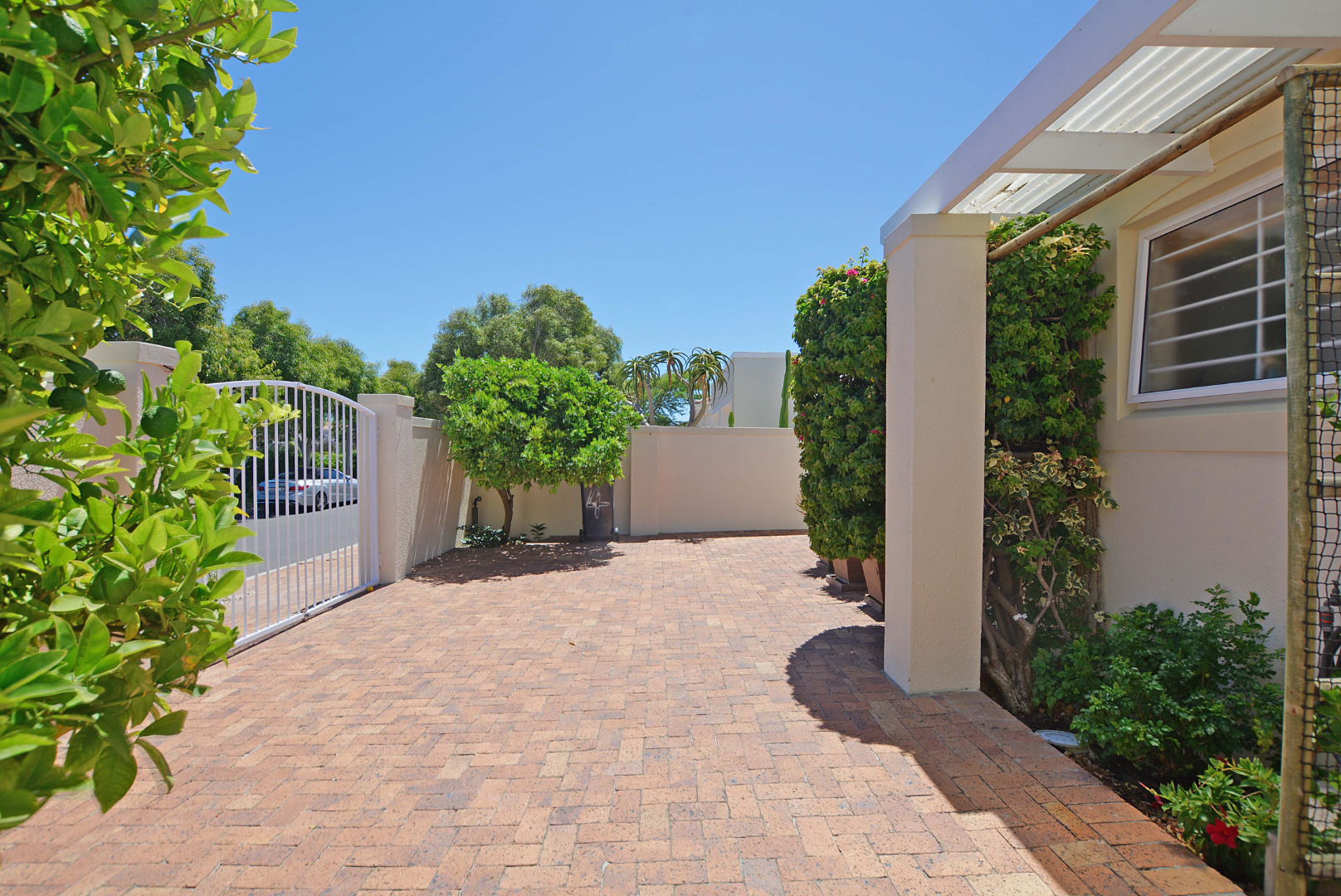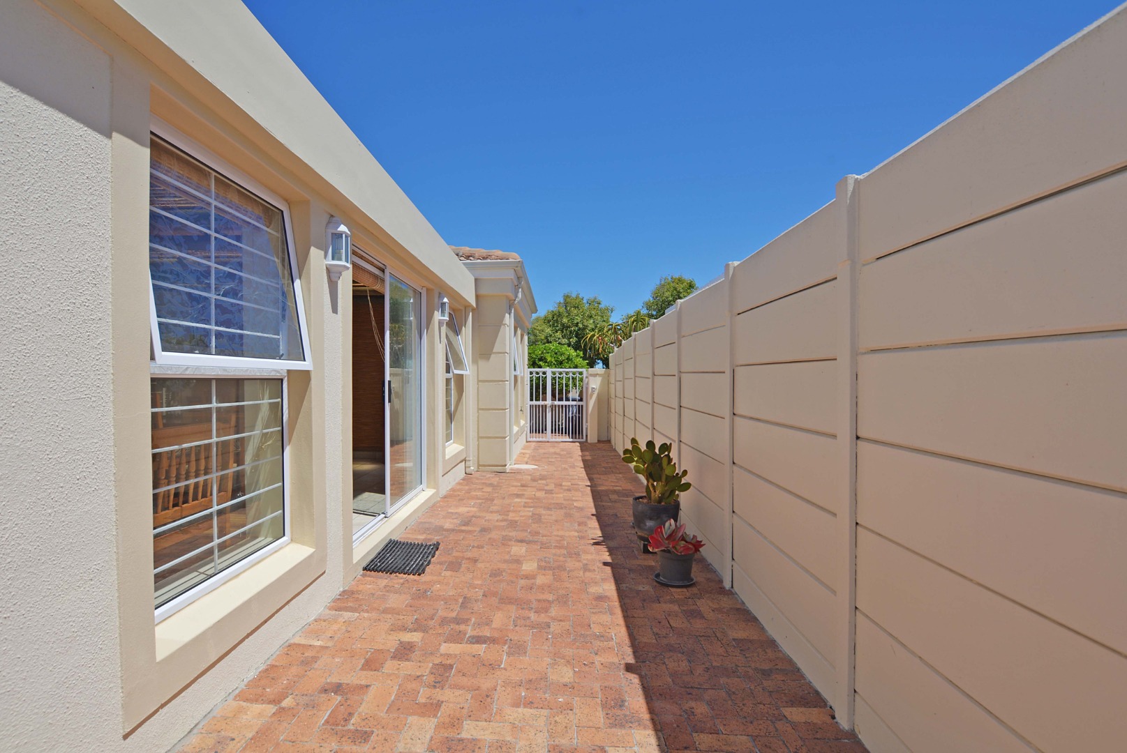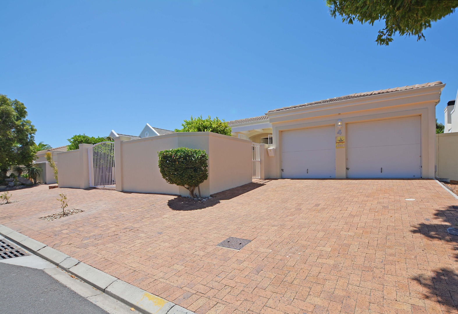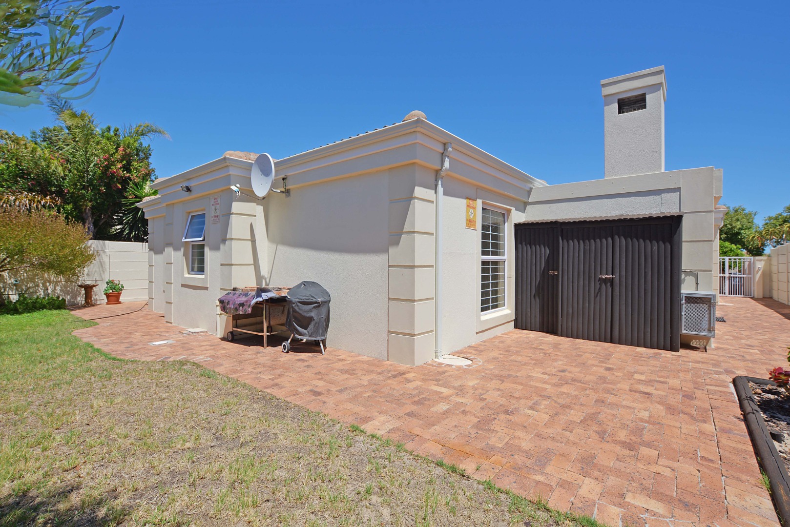 This freehold is situated in the desirable security estate of West-Wood. It is located opposite one of the parks. It offers an inviting entrance hall where the extra-large main bedroom with a full bathroom (double basin, shower, bath) is situated at, by the western side of the house. The automated double garage is tiled with lots of extra cupboards. There is an open plan lounge/dining room and well-equipped kitchen with gas hob, electric oven, extractor fan, two water points, ample cupboards. The kitchen also leads out to a drying area at the southern side. Furthermore, it has a braai room opening up at the northern side to the garden area, with a separate gas braai. It also has a well sized study with ample bics, two large tiled bedrooms at the other end of the house. Additionally, there is also a full family bathroom, an inverter, lots of bics, a linen cupboard, excellent security, a manicured garden and there is space at the front of the house for extra cars. It is close to the MyCiTi bus route and all amenities.