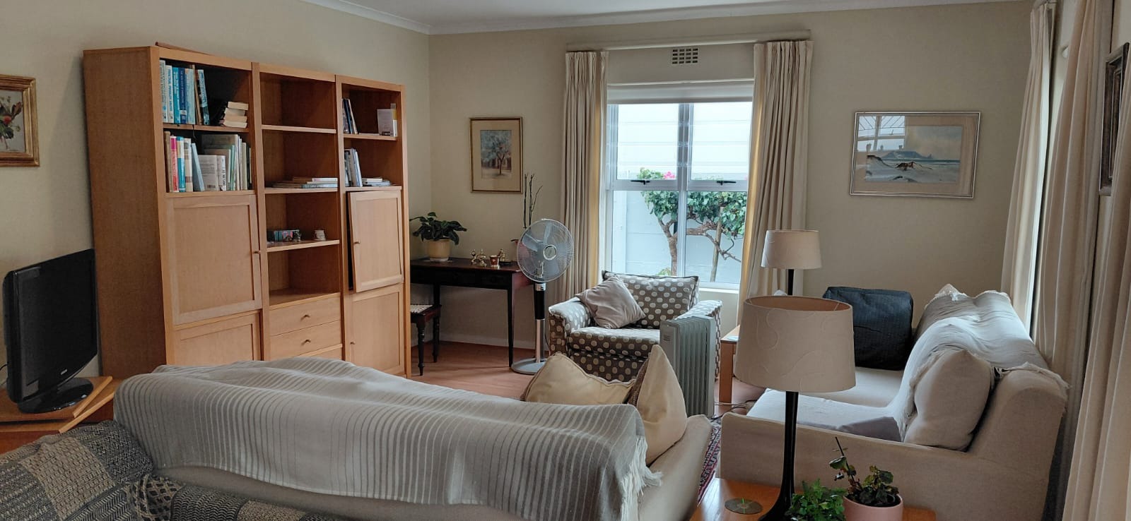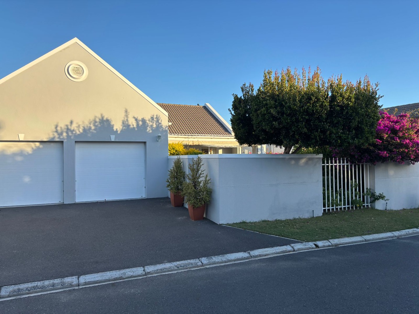 The patio leads onto a neat and private landscaped much-loved garden, protected from the South Easter. Space for a small pool!!