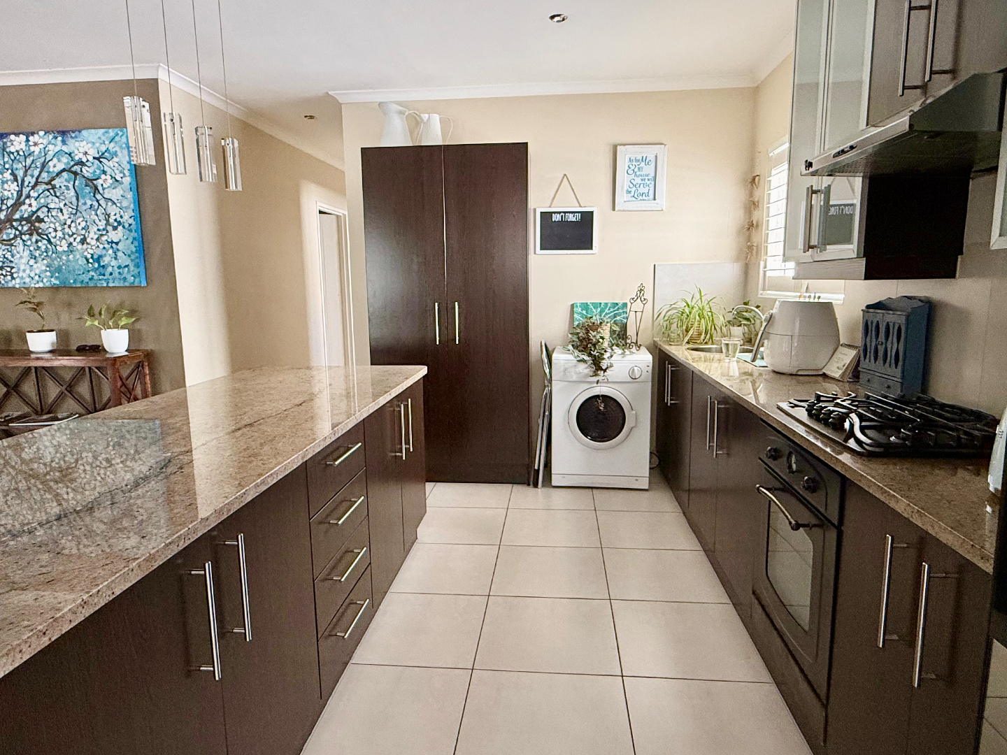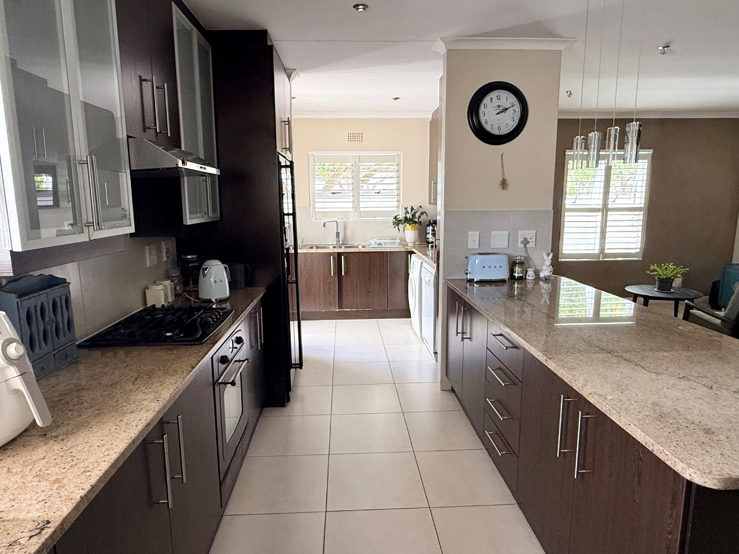 But the fun doesn't stop there! This home truly shines with its dedicated indoor-outdoor entertainment space. Imagine hosting braais with ease thanks to the built-in braai and even a pizza oven, all complemented by a substantial granite-topped bar with stacked stone detailing. It’s the perfect spot for making memories. Outside, you'll find a refreshing pool and a well-maintained garden, offering a private oasis for relaxation and play.