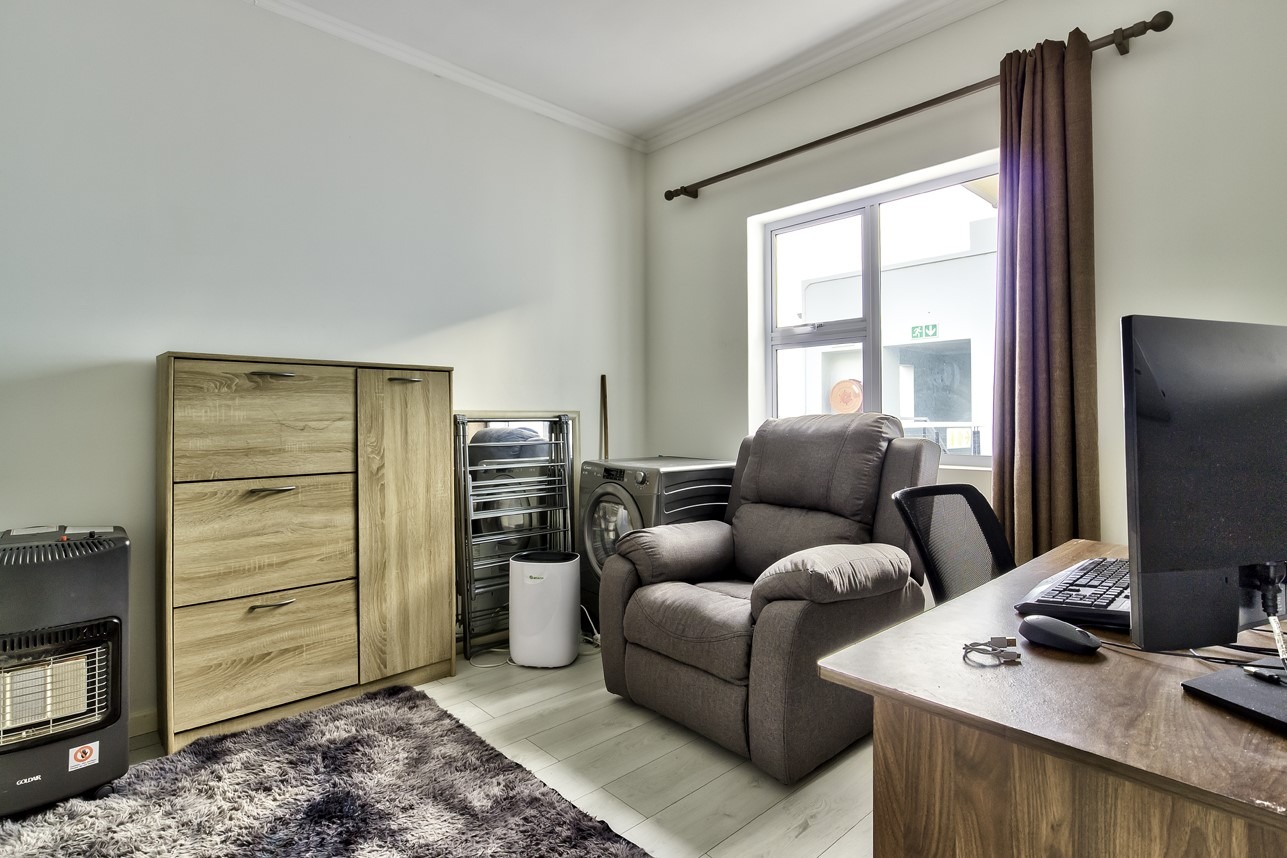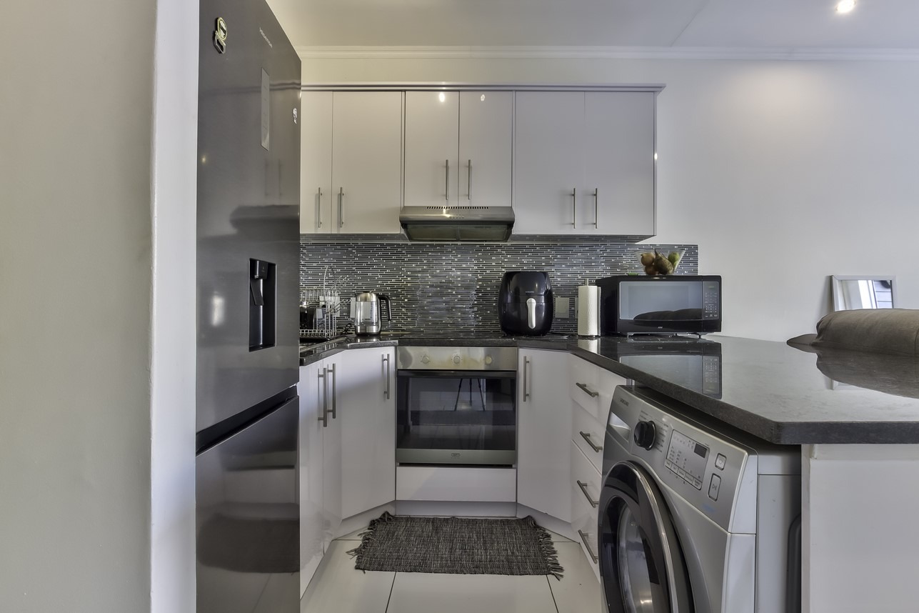 Modern, tiled lounge, dining and kitchen, with laminate floors in the bedrooms. Built in cupboards from floor to ceiling. Light spacious unit in secure block. Only 20 units. Parking Bay for 1 car.