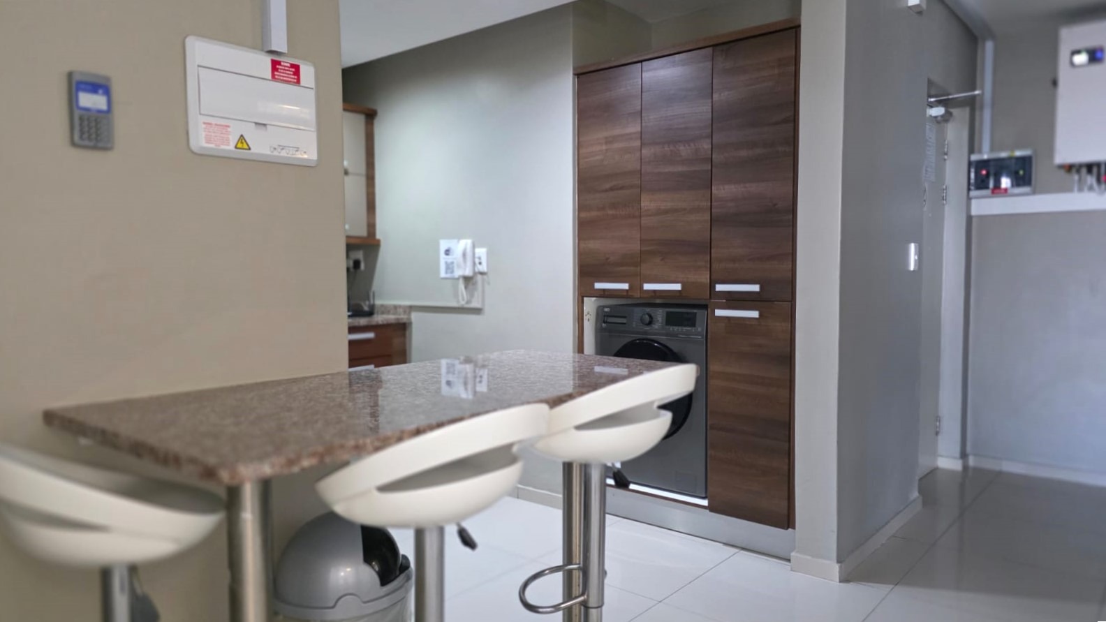 Residents benefit from a host of lifestyle amenities, including a communal swimming pool, a fully equipped gym, and a relaxing spa pool. The property offers two dedicated parking bays and is wheelchair friendly, with convenient lift access. Enhanced security is provided by 24-hour security, CCTV, an access gate, electric fencing, and a security post. Connectivity is ensured with fibre internet, and a battery inverter adds to the property's reliability.