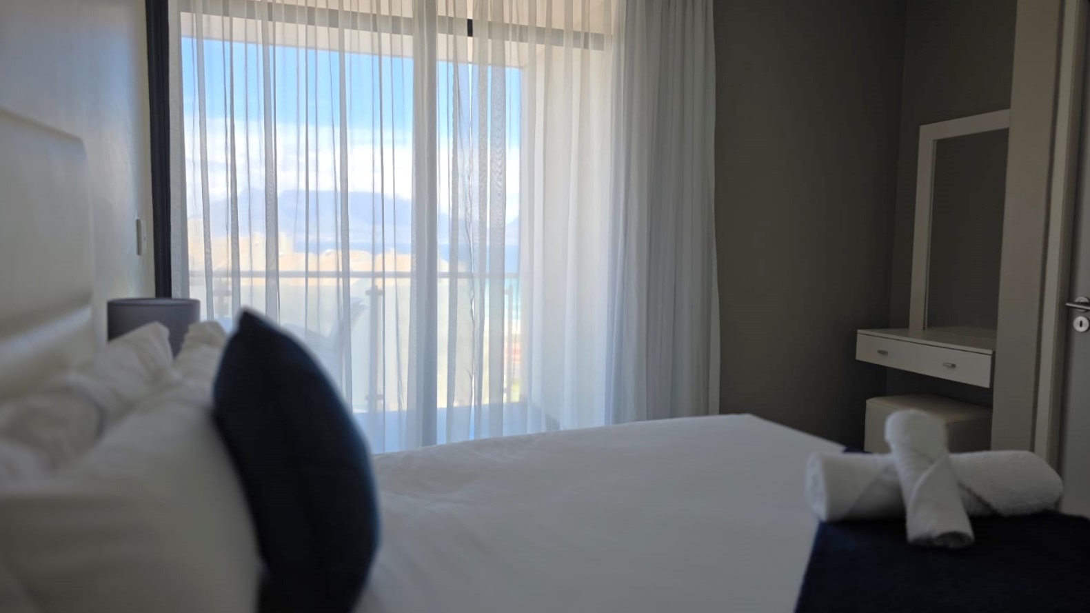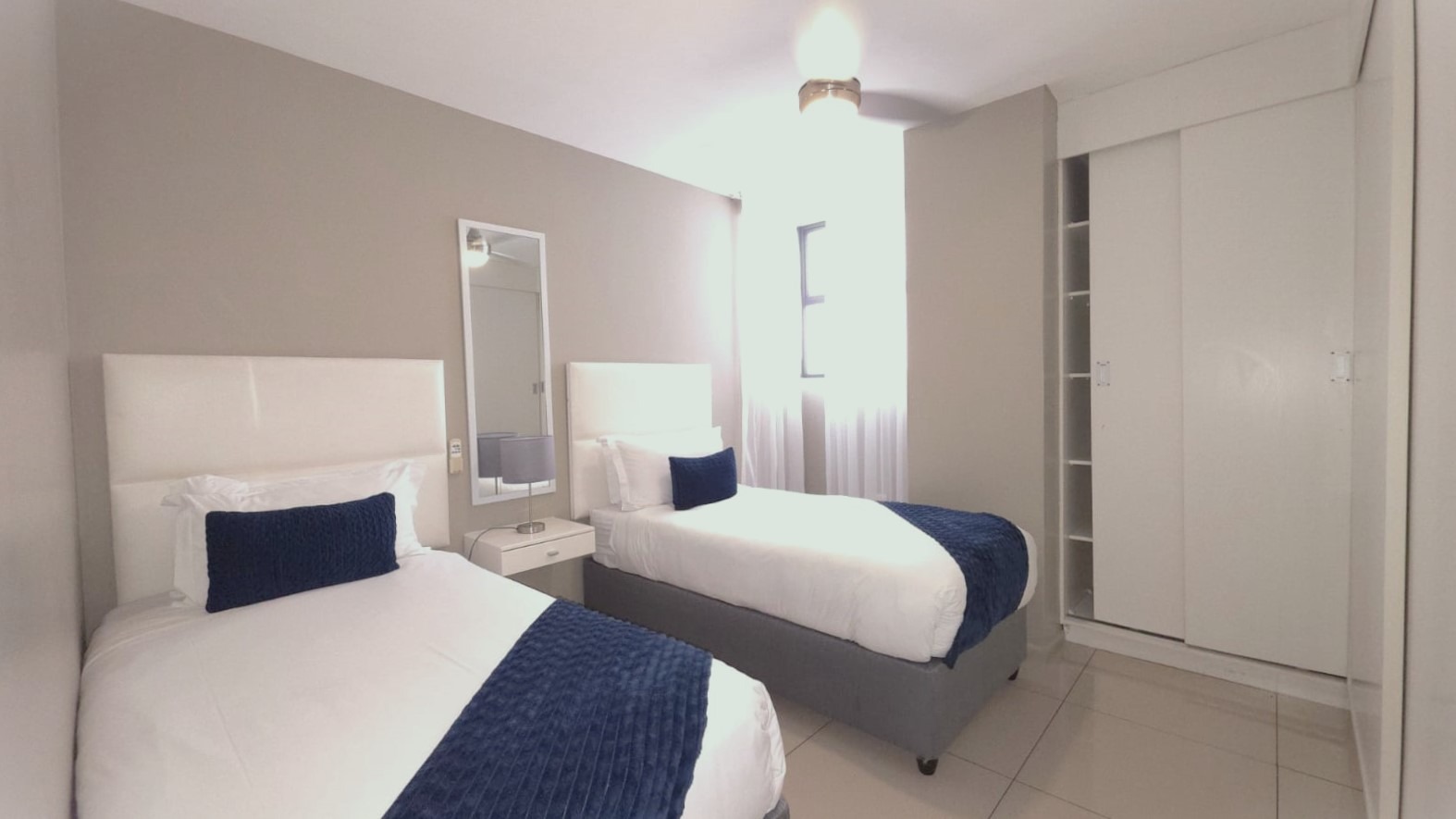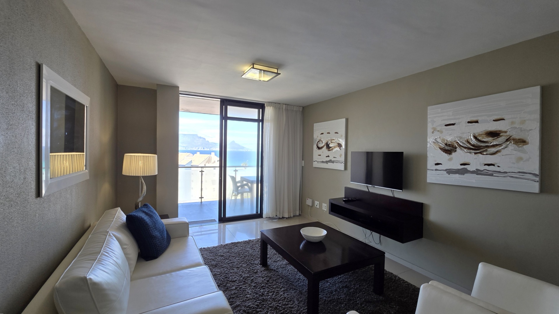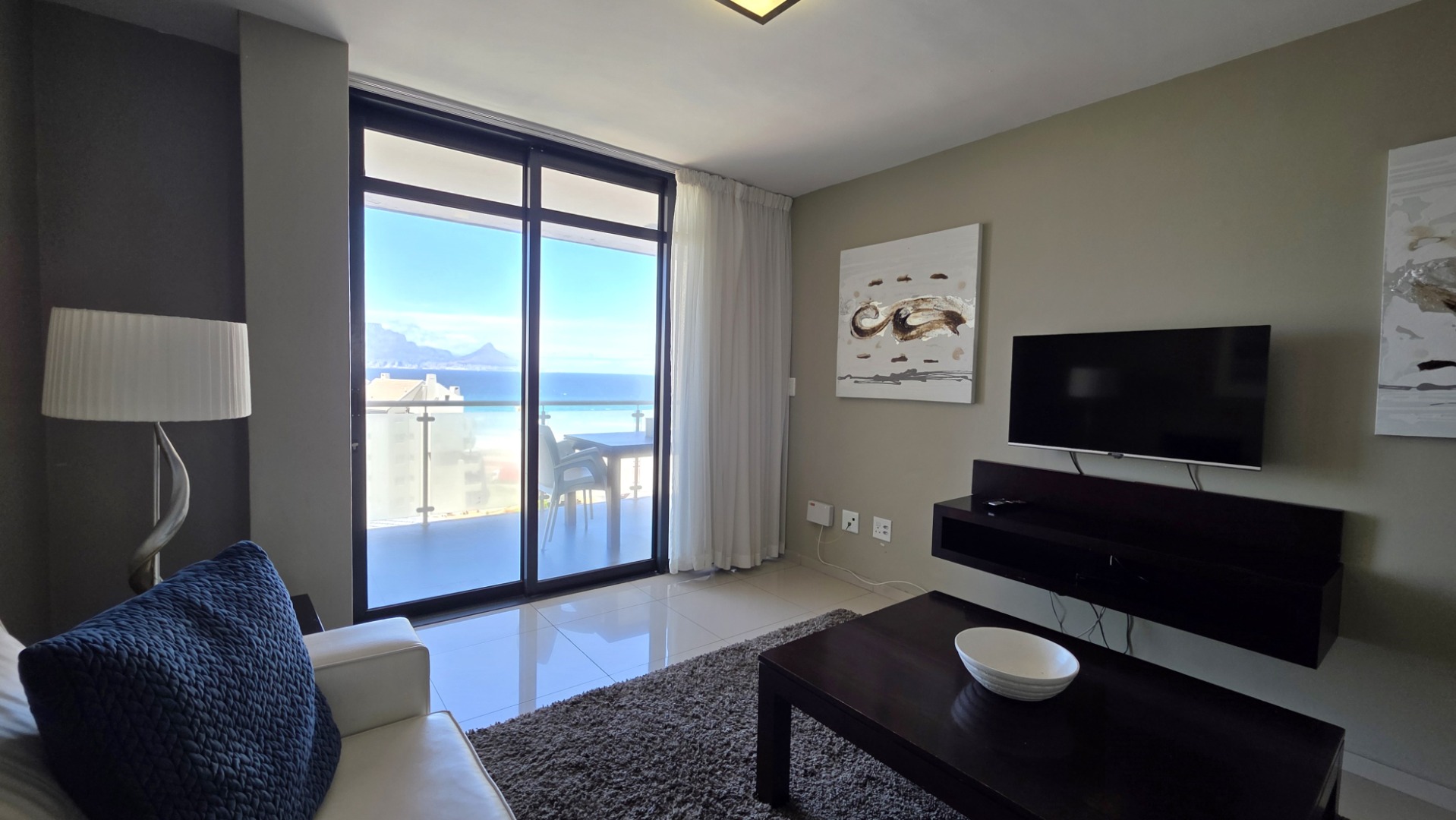 This apartment features two comfortable bedrooms and two well-appointed bathrooms, designed with a neutral palette for a serene ambience. Large windows in the bedrooms offer distant scenic views, while the bathrooms feature modern fixtures, including floating sinks and built-in bathtubs, creating a clean, functional space. Stunning views from the main ensuite bathroom ensure you shower whilst enjoying the view of Table Mountain/Lions Head.