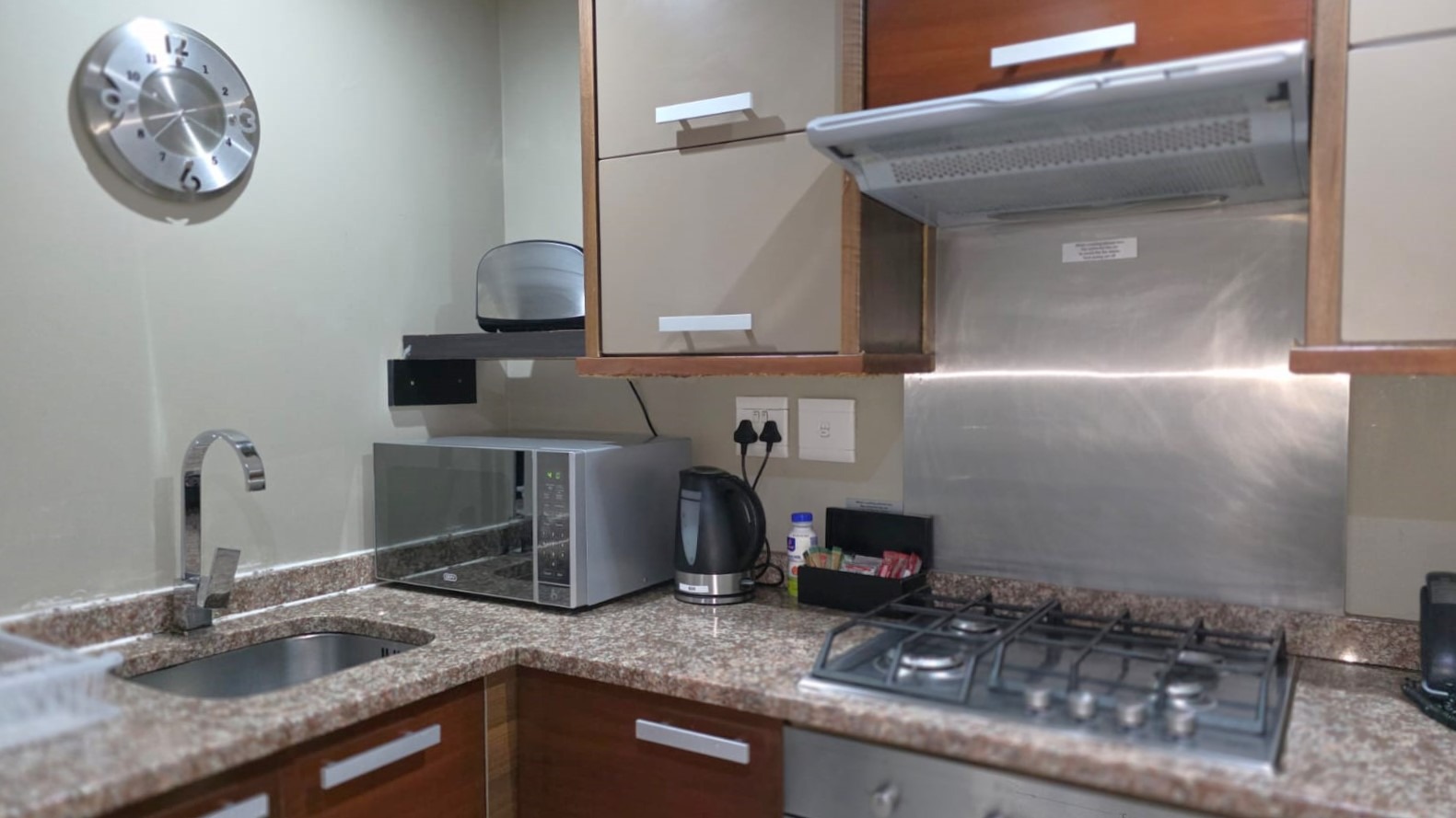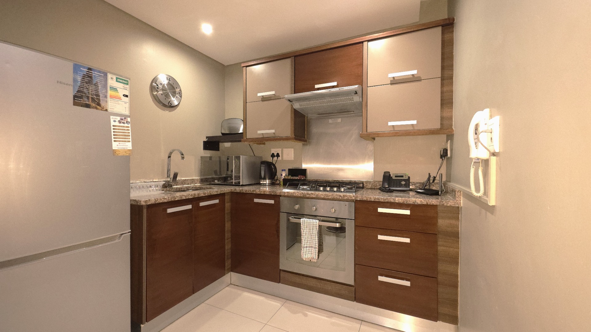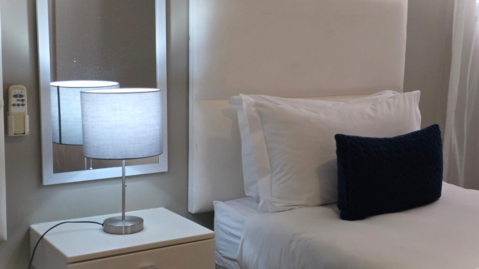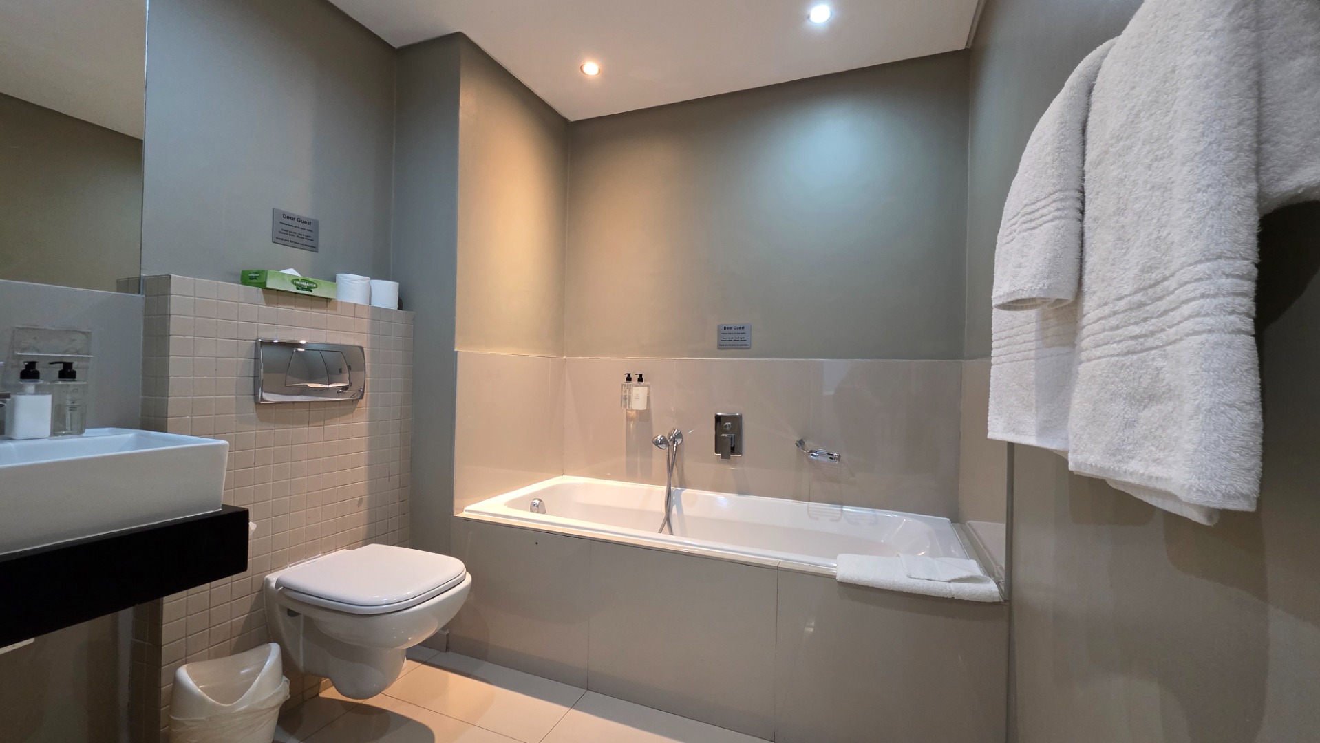 This apartment features two comfortable bedrooms and two well-appointed bathrooms, designed with a neutral palette for a serene ambience. Large windows in the bedrooms offer distant scenic views, while the bathrooms feature modern fixtures, including floating sinks and built-in bathtubs, creating a clean, functional space. Stunning views from the main ensuite bathroom ensure you shower whilst enjoying the view of Table Mountain/Lions Head.