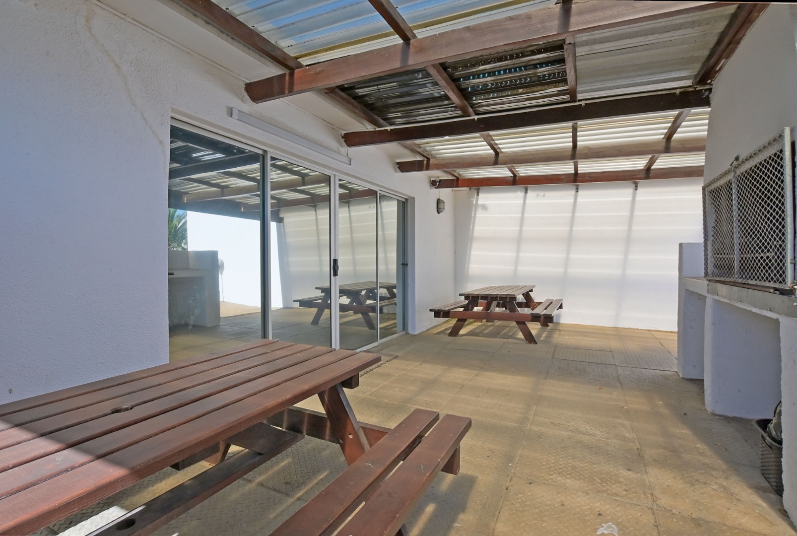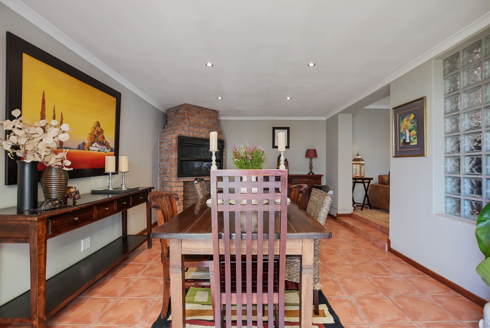 • The spacious lounge and dining room create a warm, inviting atmosphere, with the dining area featuring a built-in indoor braai – perfect for entertaining.