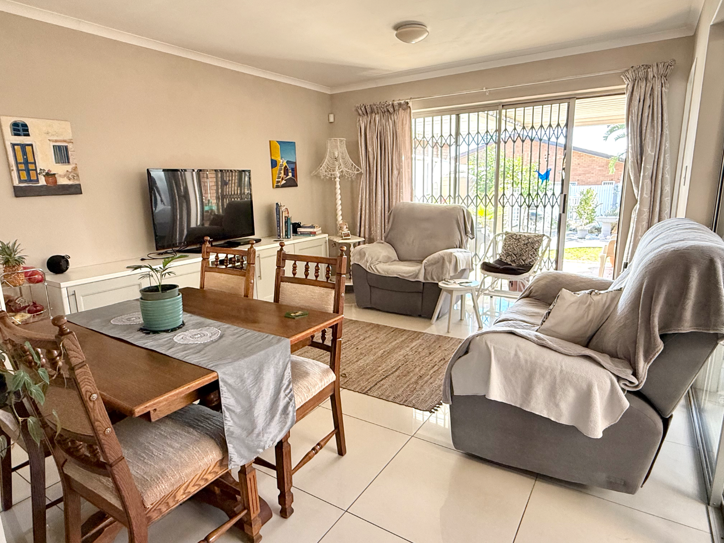 There’s a single garage and extra undercover, behind-gate parking for two cars. Safety is important and this home comes with burglar bars and a security gate, giving you that extra peace of mind.