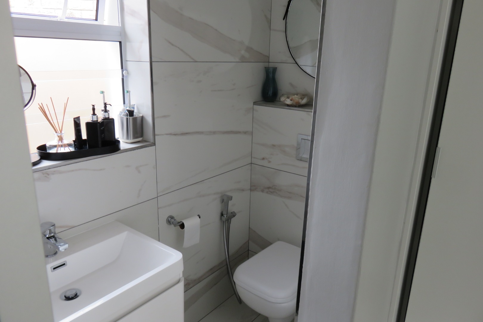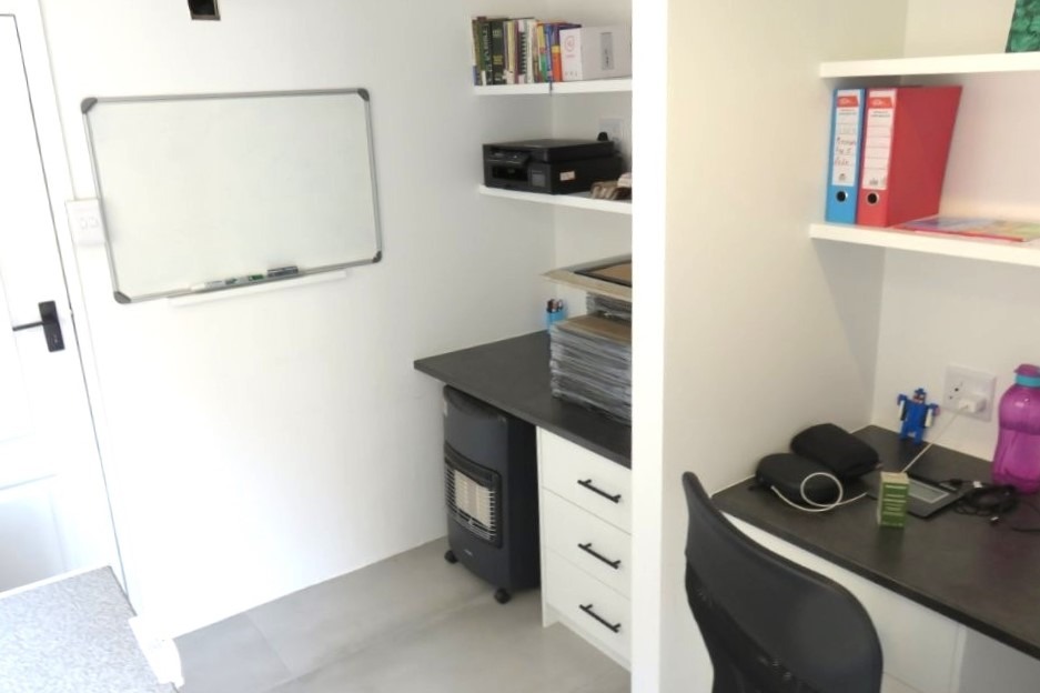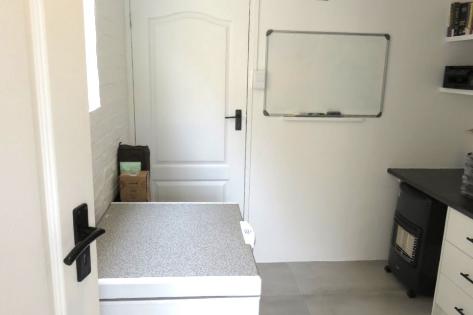 The garage has been converted to a storeroom, office and a private loo, this can be reverted back to a garage. There is adequate secure parking on the property for 2 vehicles.