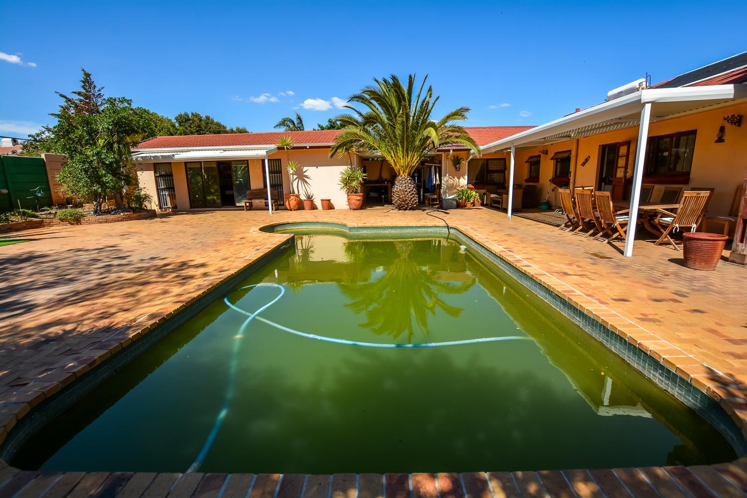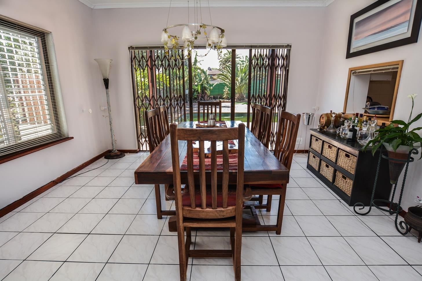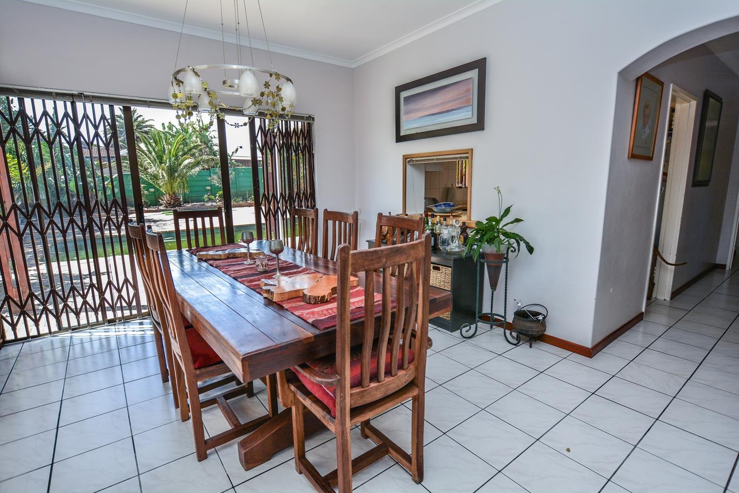 The house is light and spacious with large well-proportioned rooms. The large, open plan tiled lounge and dining area opens out to a paved entertainment area which has a solar heated swimming pool and covered braai area perfect for entertaining and family living.