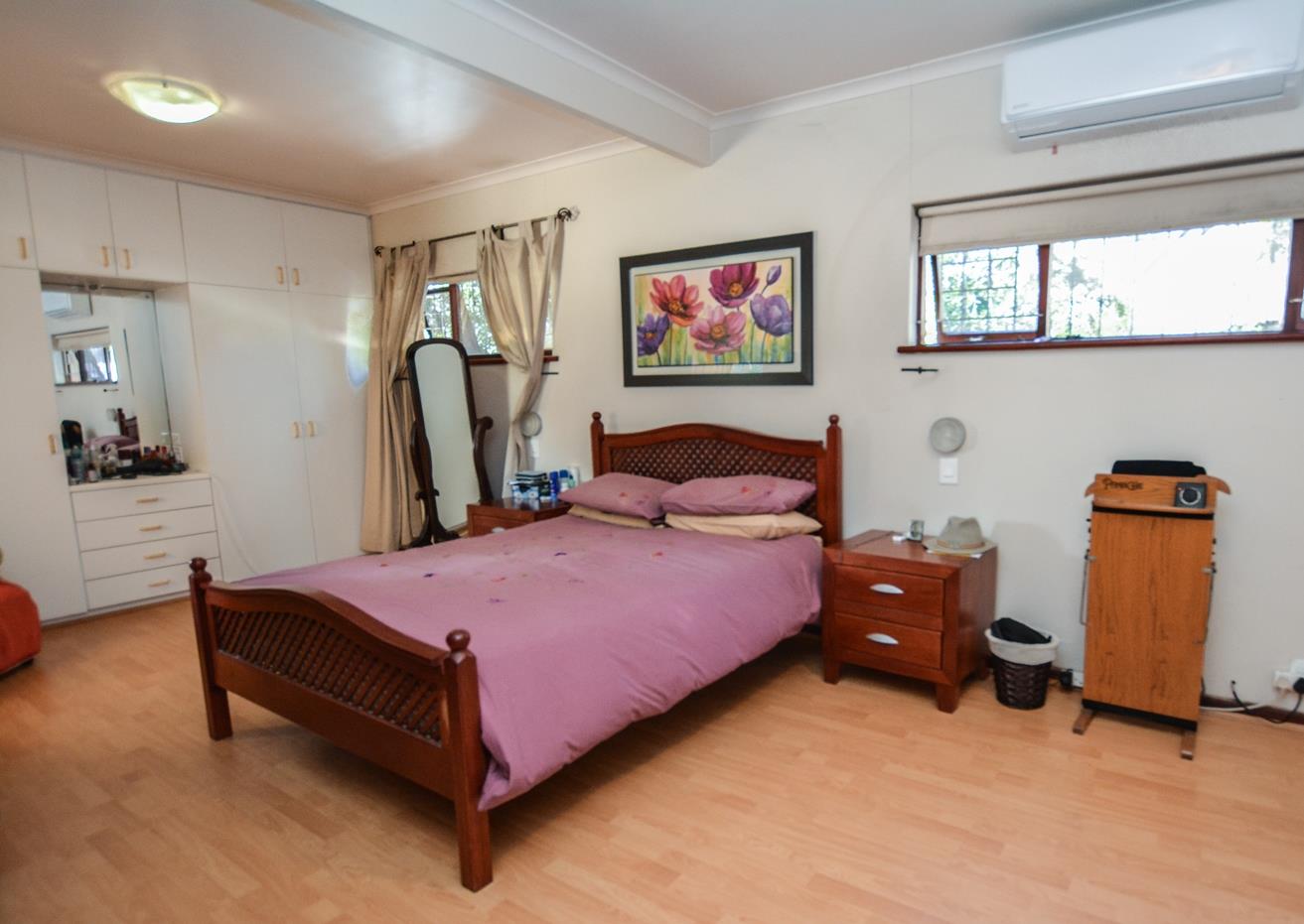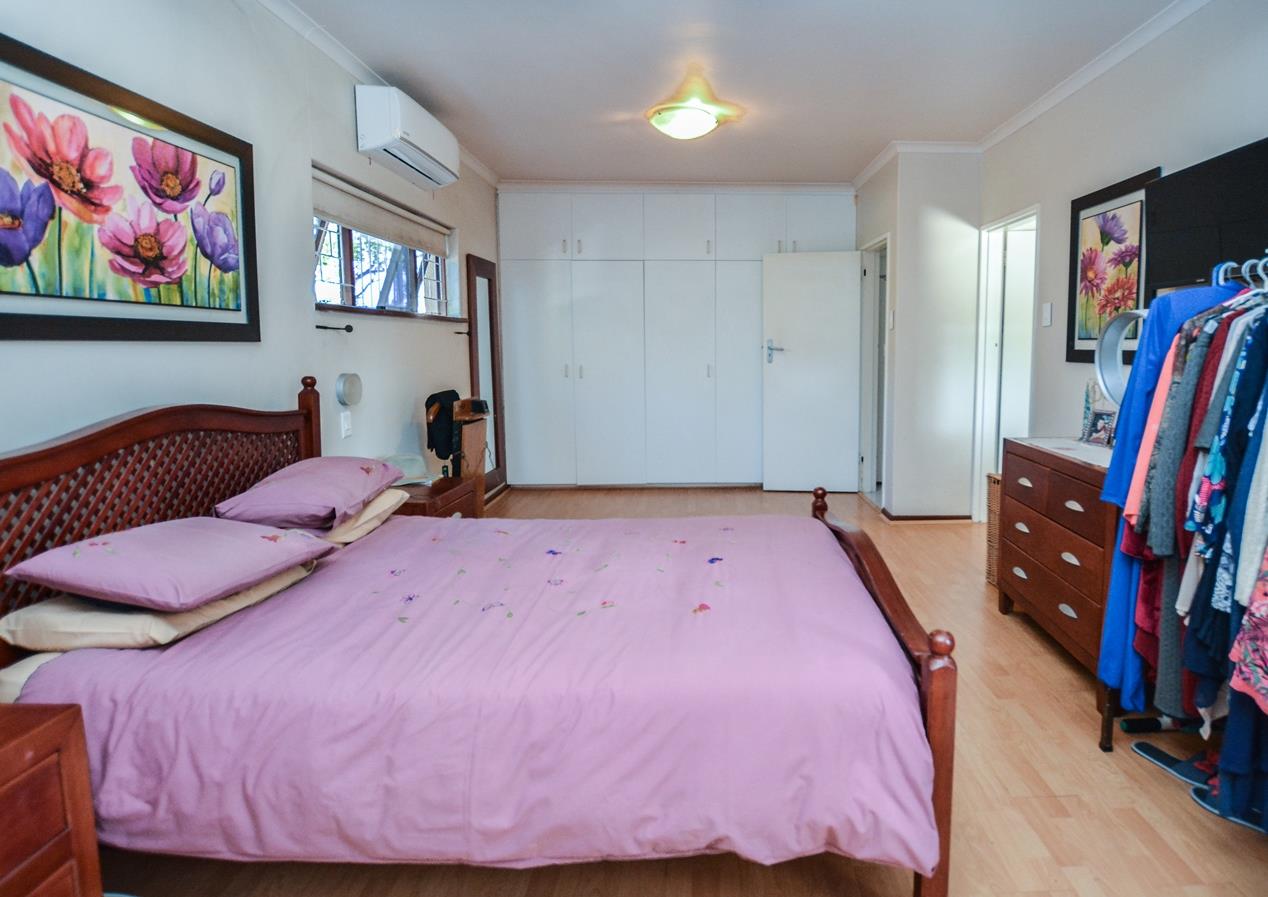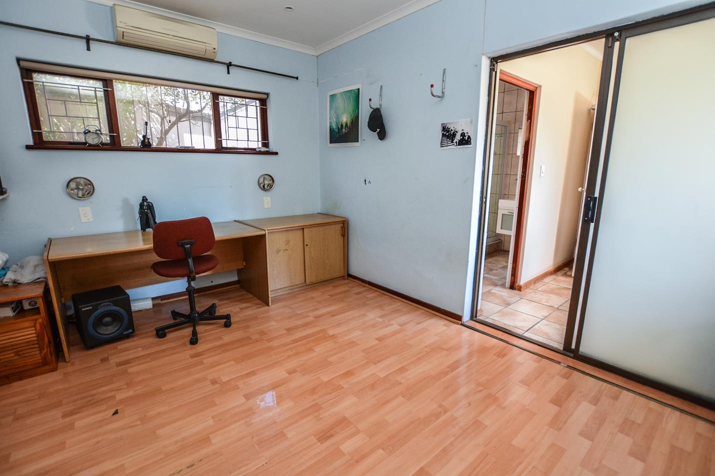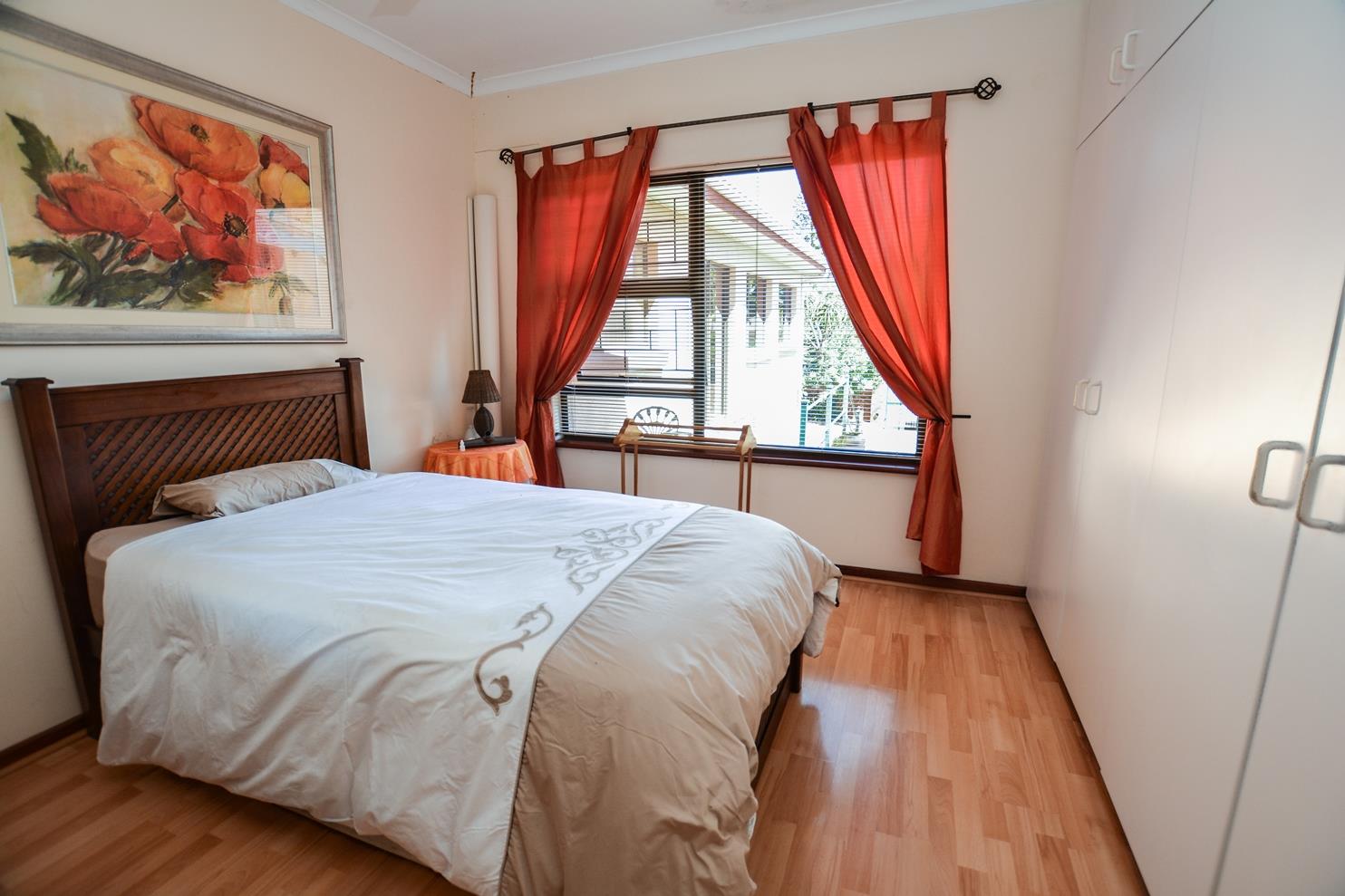 The larger than usual main bedroom has ample built in cupboards. There is a inverter air conditioning unit which provides cold air in summer and heating in winter. It is wired for internet access and DSTV. The well-appointed on-suite bathroom has a free-standing shower, bath, basin and toilet.