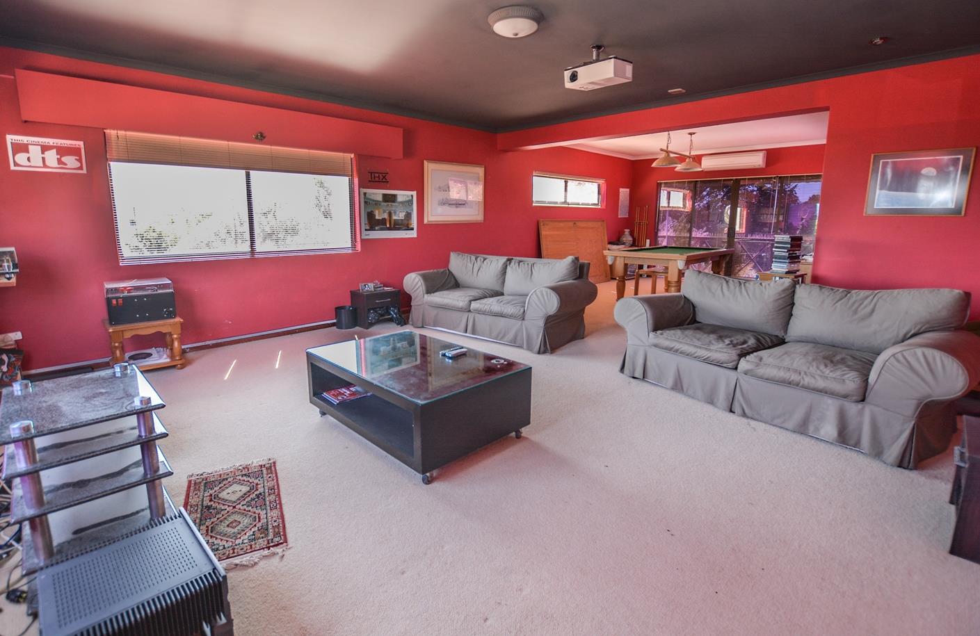 Off the entrance hall, stairs lead to a large upstairs room with mountain views at the front and a balcony over-looking the pool area. This sound-proofed room with air conditioning could be used for a variety of purposes - an additional bedroom with the opportunity to add a bathroom or family room or even as a music / film studio.