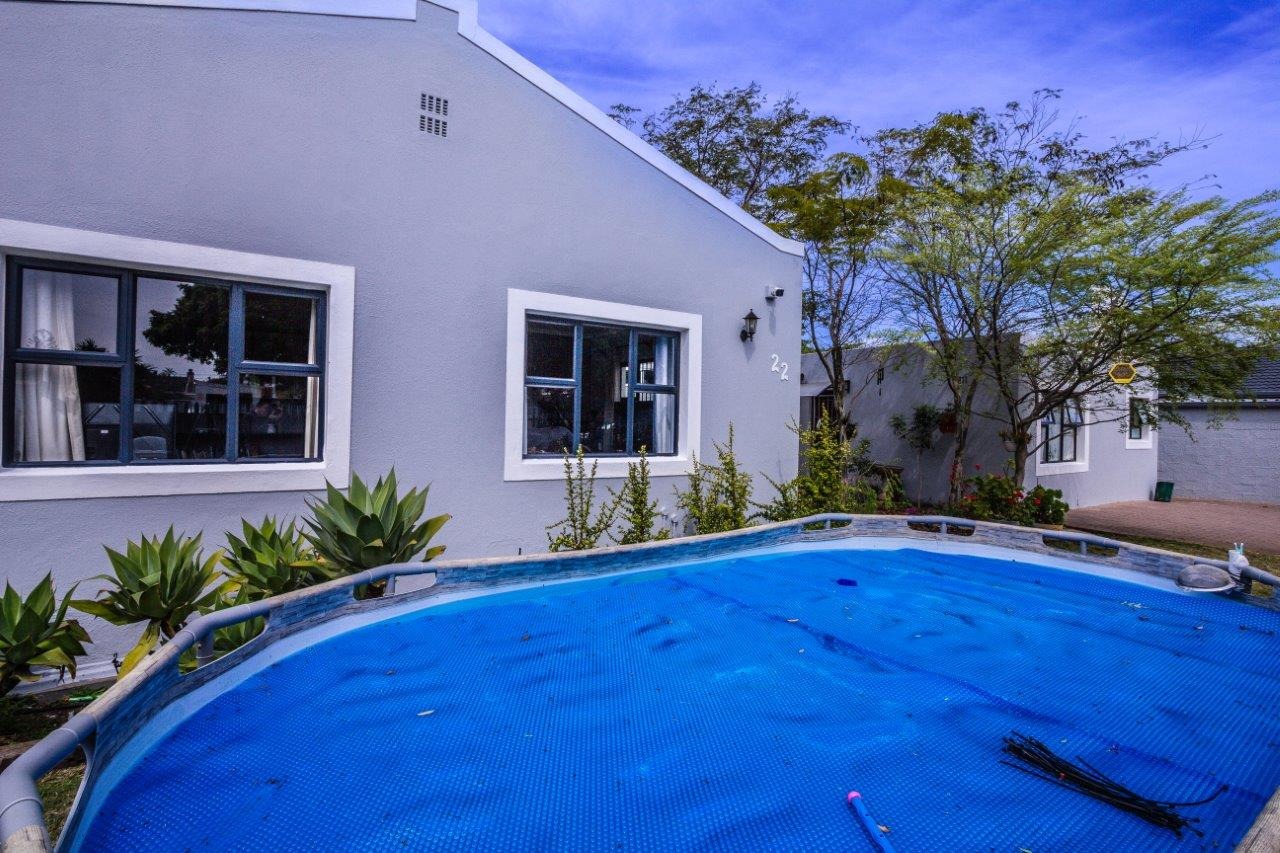 Large breath-taking Kitchen with trendy gloss finishes, custom Splash backs, Gas Cooker and Caesarstone tops, 3 double-sized luxury Bedrooms, 2 Bathrooms (Master en-suite) and Recessed Lighting - PLUS spacious Guest Quarters with separate Entrance, Lounge and Bedroom area, Fully fitted Kitchen with Gas Cooker, en suite Bathroom and sunny private Garden. Exciting extras include: an essential Borehole, secure Parking for 4 cars behind Electric gates, Electronic access control, 6 Cellular-linked CCTV camera system and Portopool.