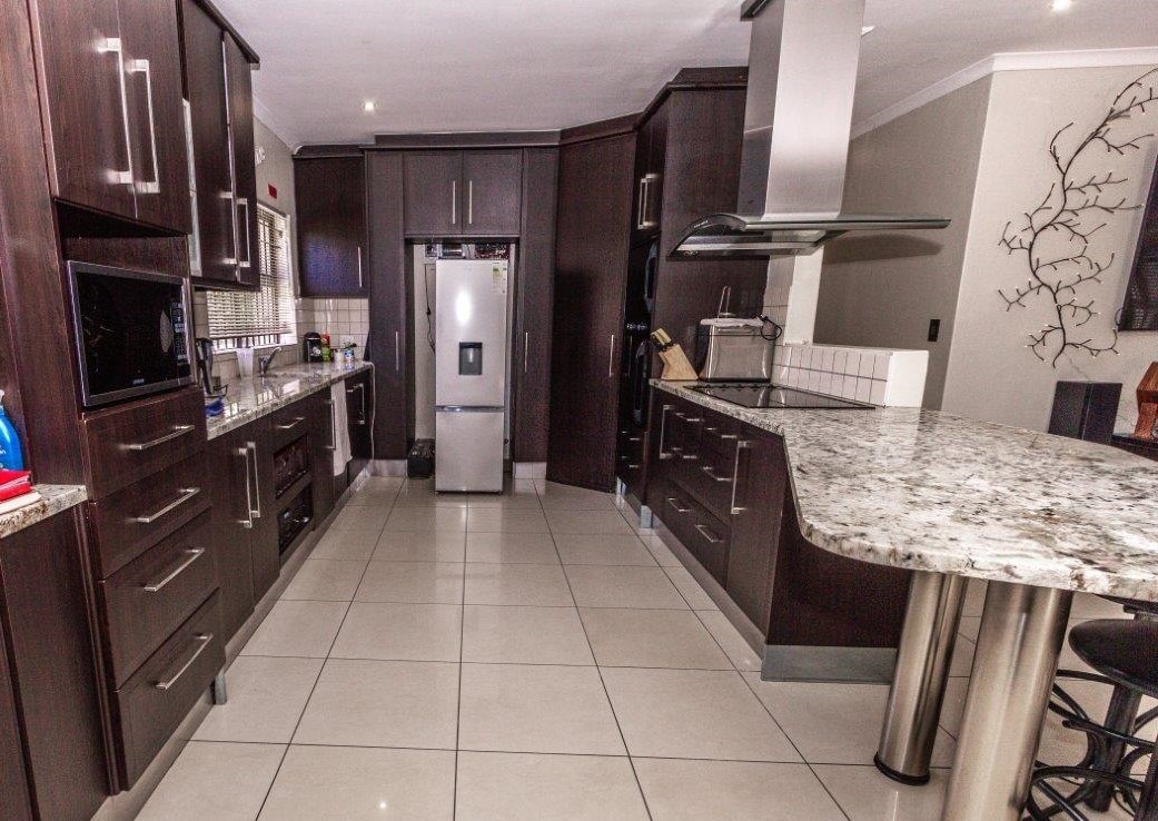 Master with walk-in Closet), 2 Bathrooms, Fully-fitted Chefs Kitchen with range of top and bottom cupboards and separate Scullery, Expanders on all opening sliders, Recessed Lighting, over-sized automated double Garage with