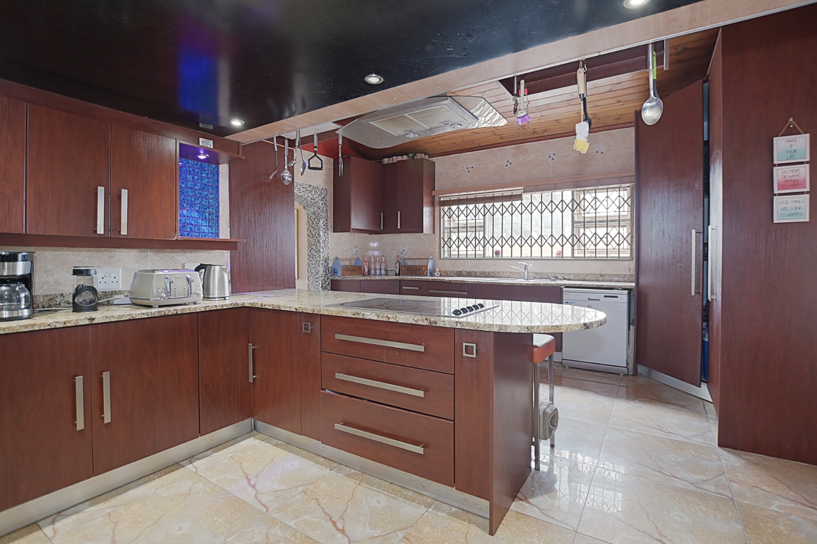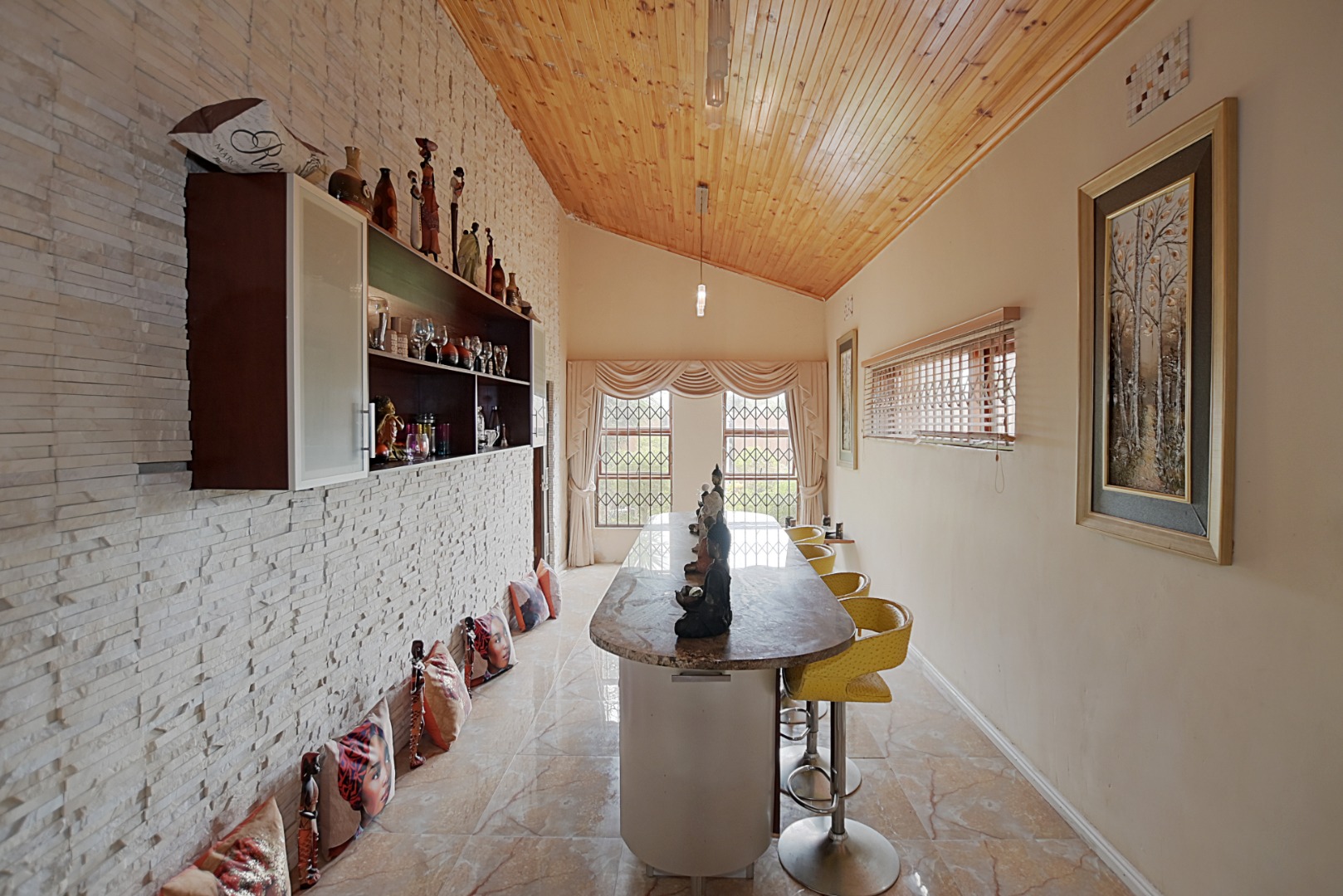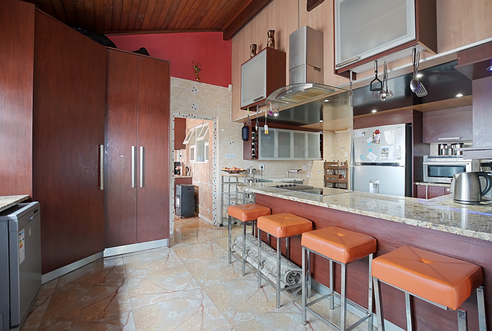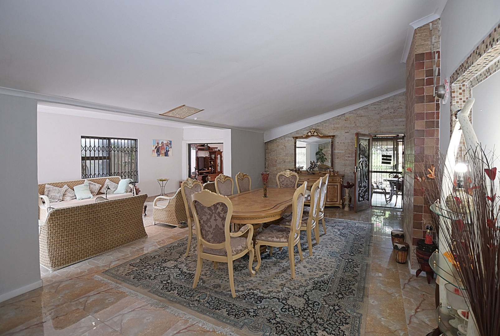 This huge family home is situated in a well sought after area of Table View. The grounds are 1004 sqms with a house of 370 sqms. It has six entertainment areas, a large quality gourmet kitchen with granite counters plus a large scullery. There are three bathrooms of which two of the four large bedrooms have an en-suite. One of the four bedrooms are upstairs. Furthermore, it has a luscious garden with a pool. This house is ideal for air bnb, guest house potential or ideal for developers to erect a new building on. This unique opportunity will be gone soon.