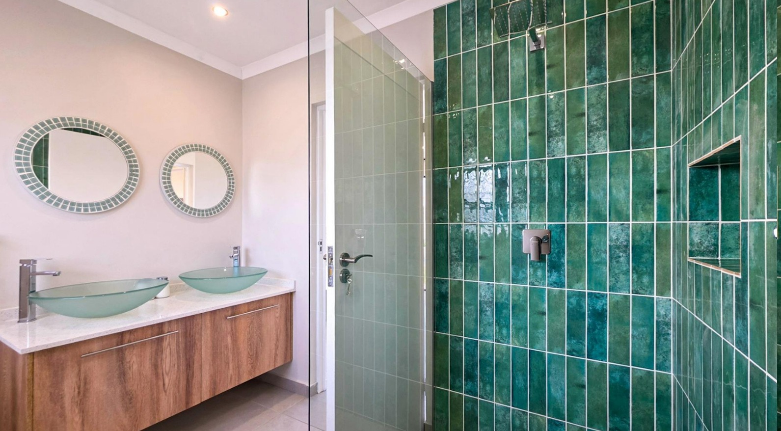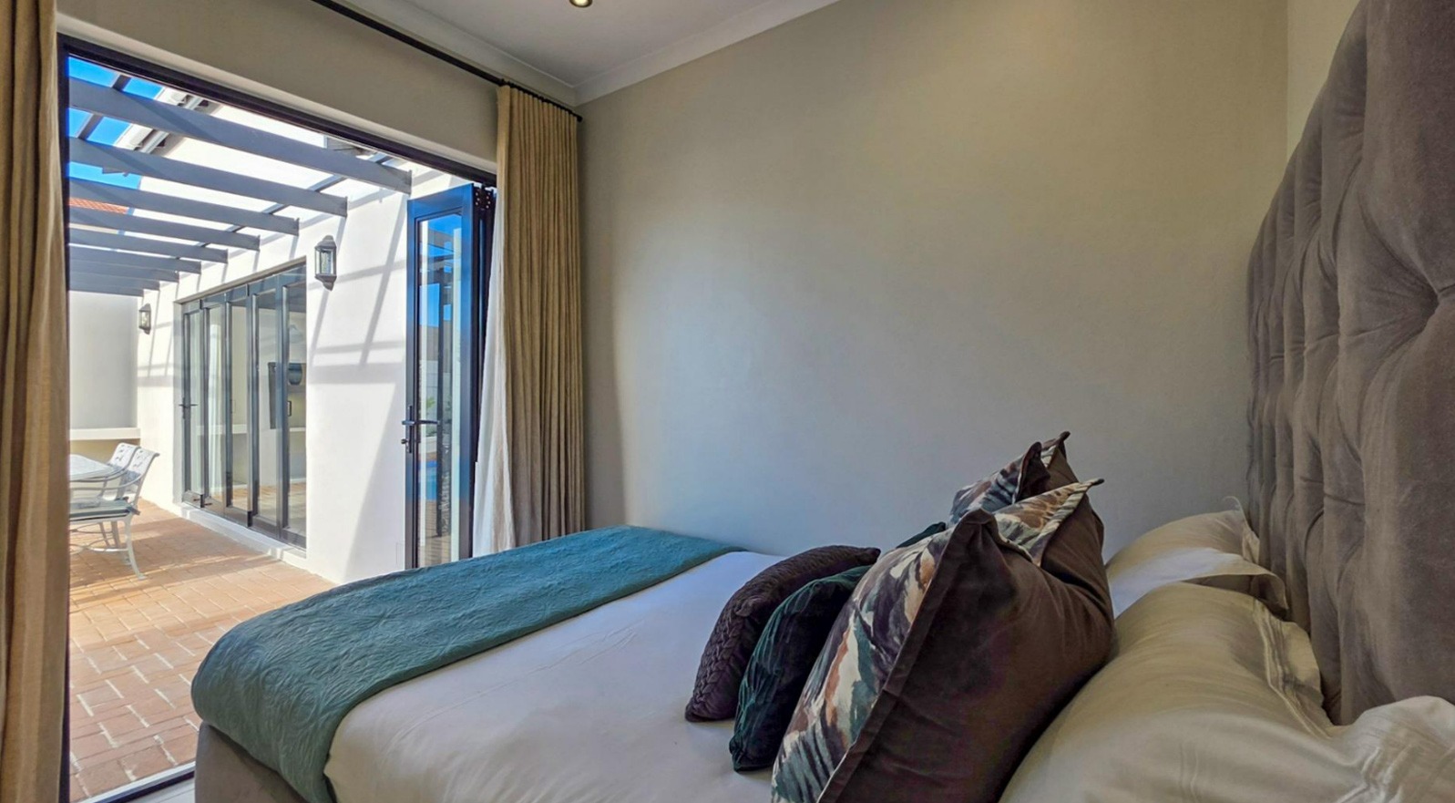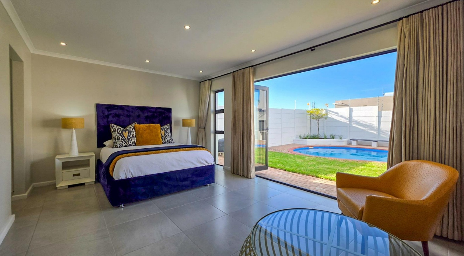 Accommodation includes four bedrooms and three bathrooms, with three bedrooms opening directly onto the pool area. The main suite enjoys a walk-in closet and private en-suite.