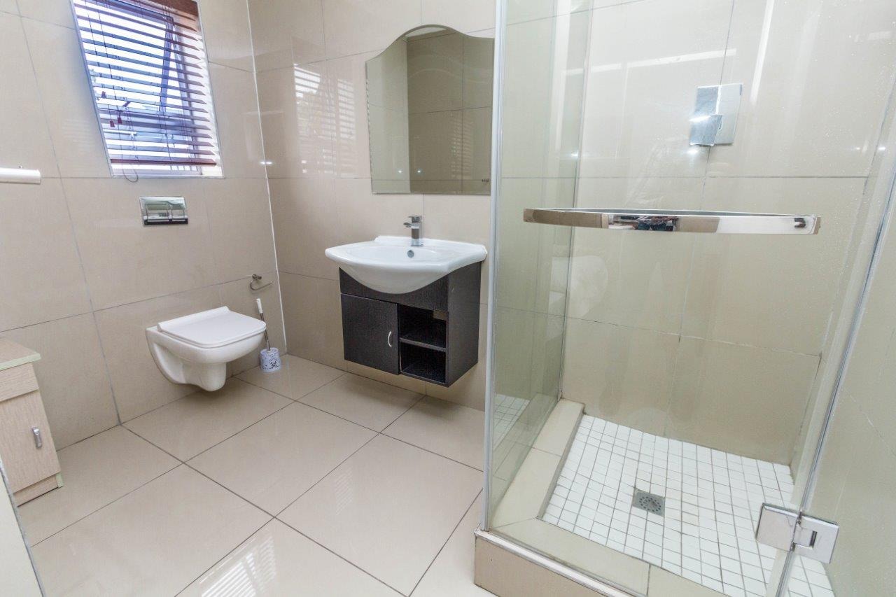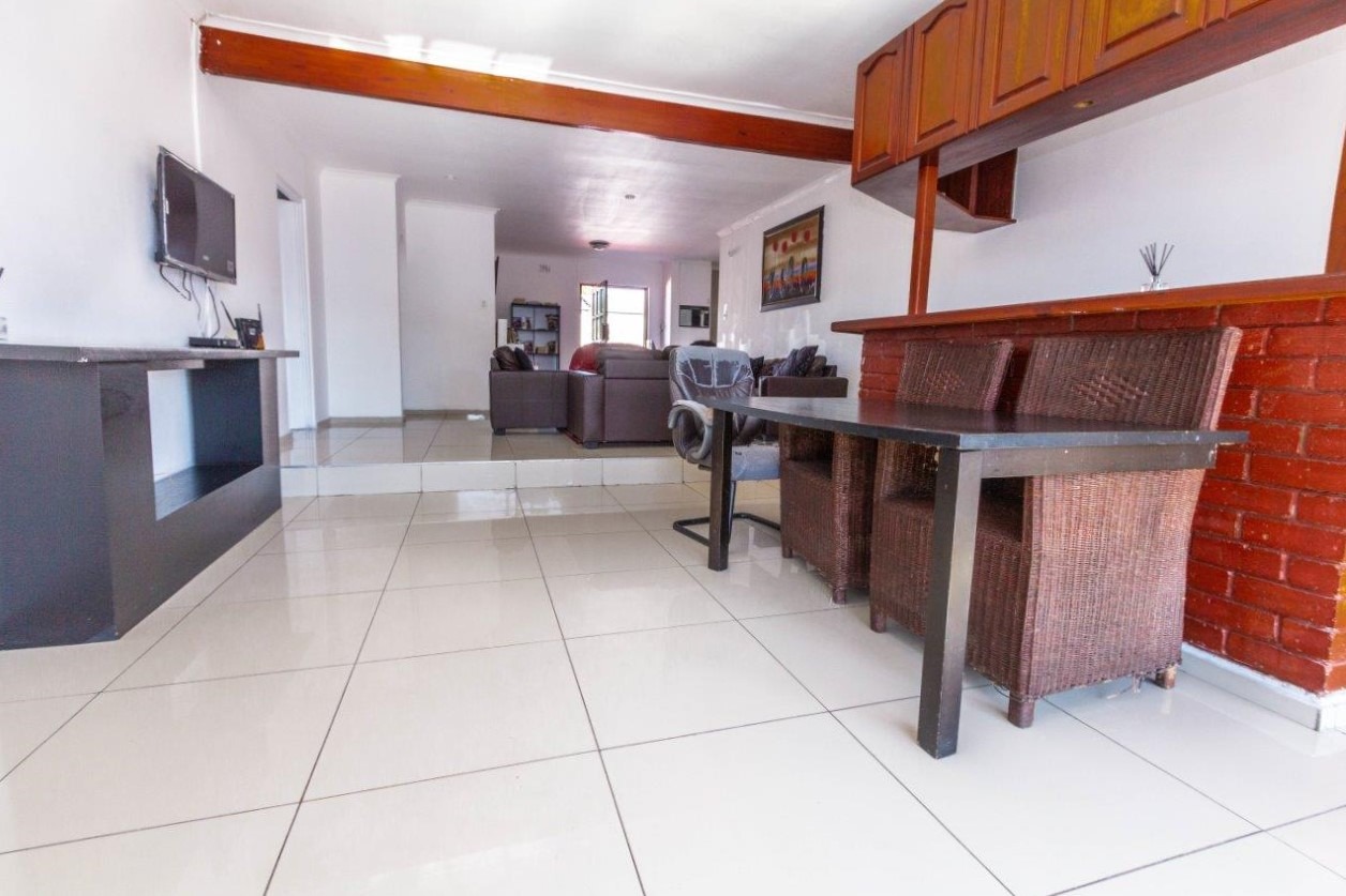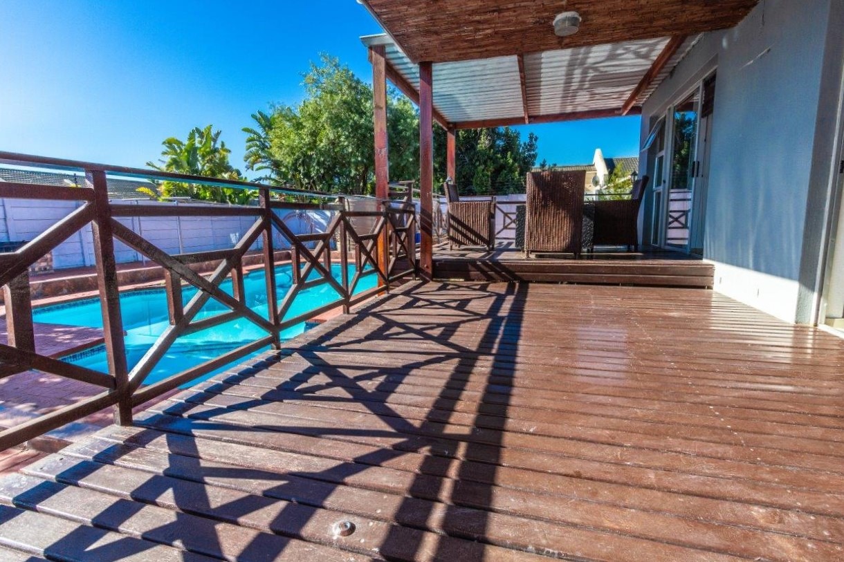 The exceptional property boasts with separate Lounge and Dining areas, Porcelain tiling throughout, Wetbar, raised under-cover Entertainment area with Yacht decking overlooking the sparkling Pool, Fully fitted Kitchen with range of top and bottom cupboards, 7 Bathrooms (all en suite) 7 Bedrooms with flat screen TV’s in all and Air-conditioning in 2, Designer blinds, Dual Electric gated entrances, secure parking for 8 cars, 2 double covered Carports, JoJo Tank, essential Borehole, full perimeter Electrified fencing and large low maintenance Garden.