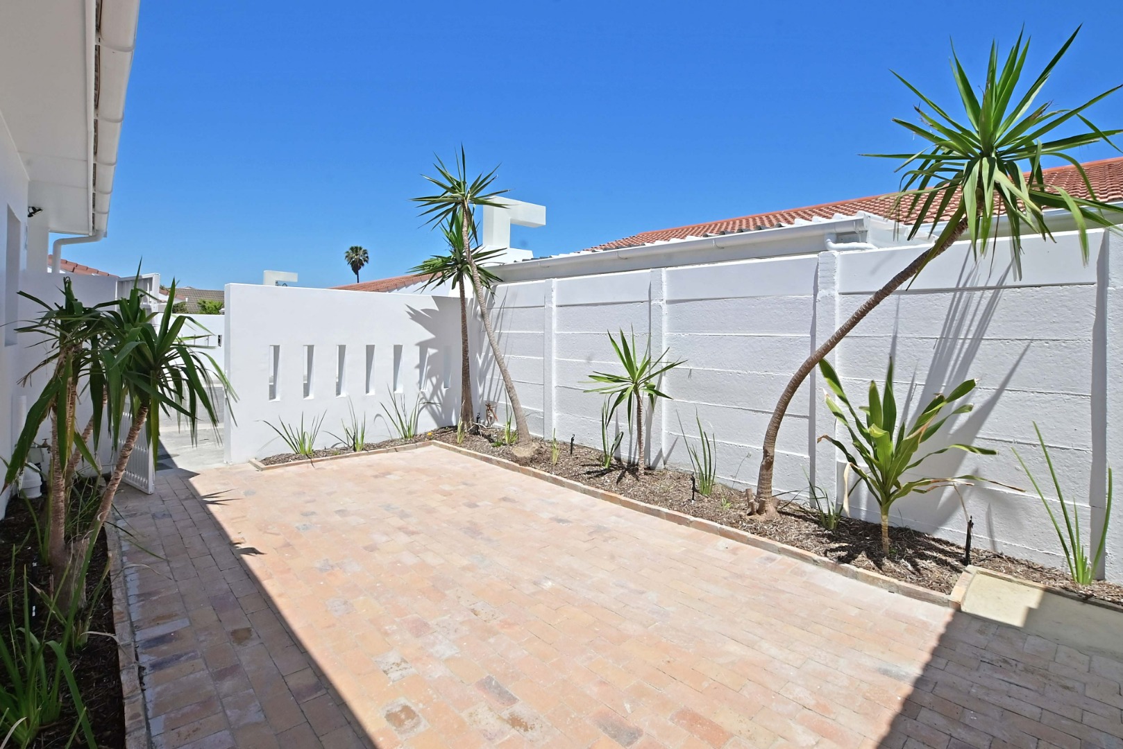 The home comes with a single garage and additional parking in front. It is part of a secure, access-controlled complex, with electric fencing along the perimeter. Pets are allowed, and the location offers convenient access to shops, restaurants, and the beach.