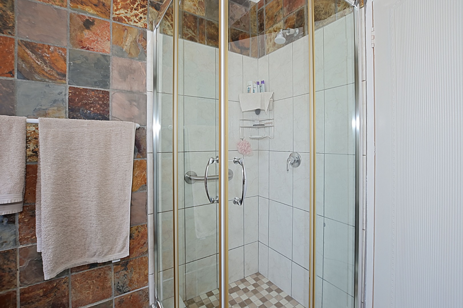 Security is well-covered with trellidor gates on all windows and doors, an alarm system, and a secure gated area for parking multiple vehicles. It has a double motorized garage, with ample parking space and storage potential, ideal for kitesurfers etc.