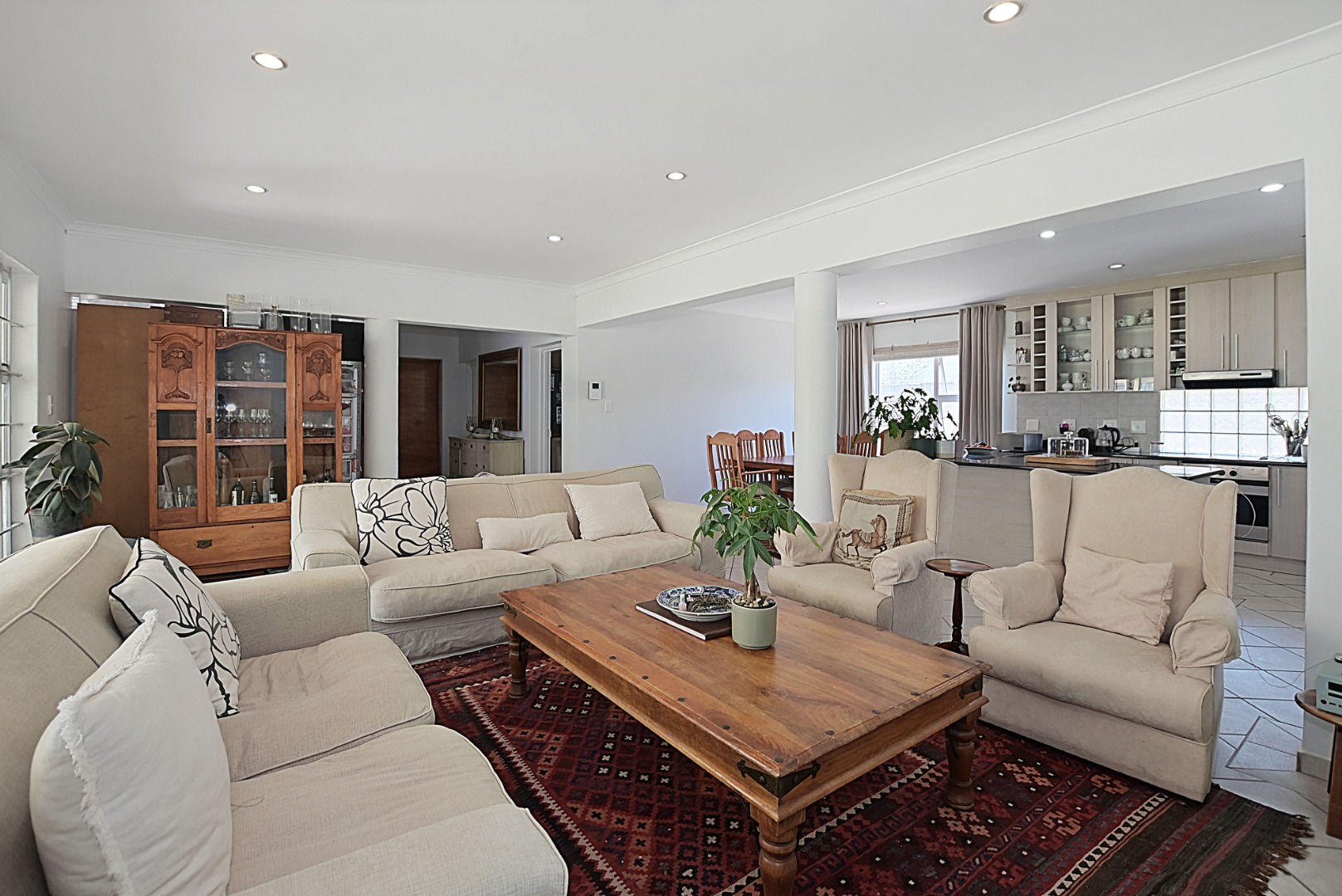 Open Plan Kitchen opens onto a Dining Area, 2 Living Areas that flow out onto the spacious under cover Braai area offering indoor outdoor living onto the Garden with Pool, Borehole and automated Irrigation System.