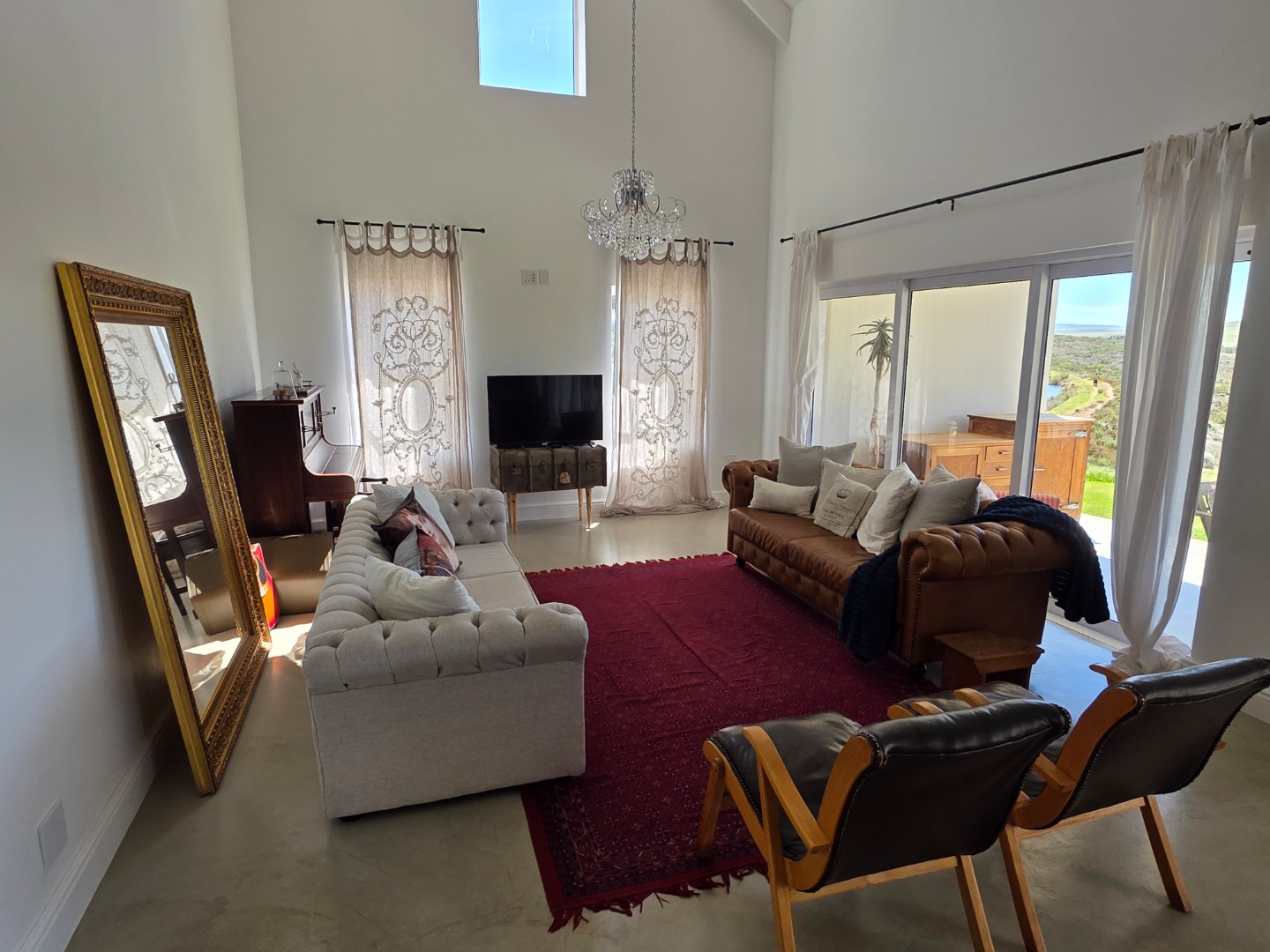 The lounge flows seamlessly onto a private entertainment area, perfect for related afternoon Sundowners or memorable family gatherings while taking in the spectacular dam and mountain views.