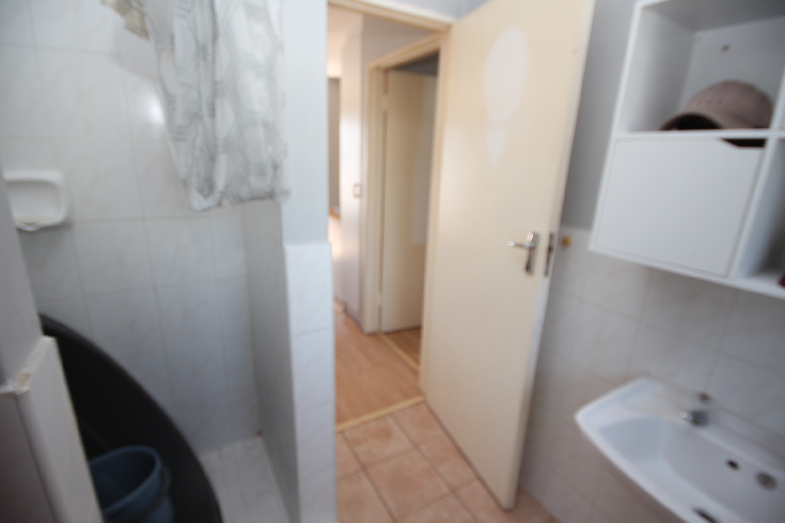 The bedroom offers laminated flooring and built-in cupboards, while the bathroom includes a basin, toilet, shower & bath.