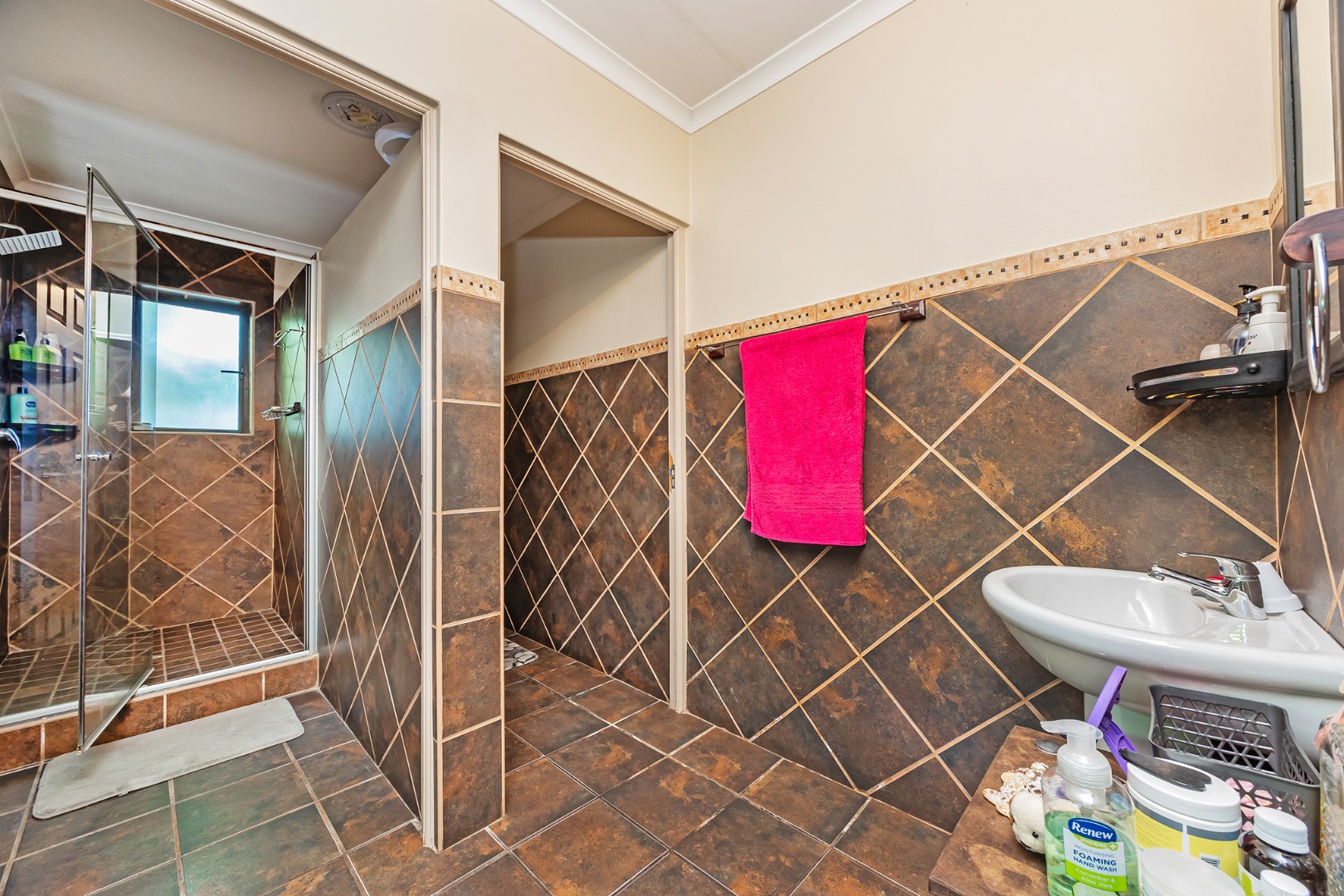 Downstairs also includes a large, versatile living wing currently divided into a full bedroom and study with an external door leading to the garden. This space, complete with its own bathroom (shower, toilet and basin) and generous cupboard storage, is ideal for extended family, guests, teenagers, dual-living arrangements, a rental opportunity, a hobby room or an au-pair suite.