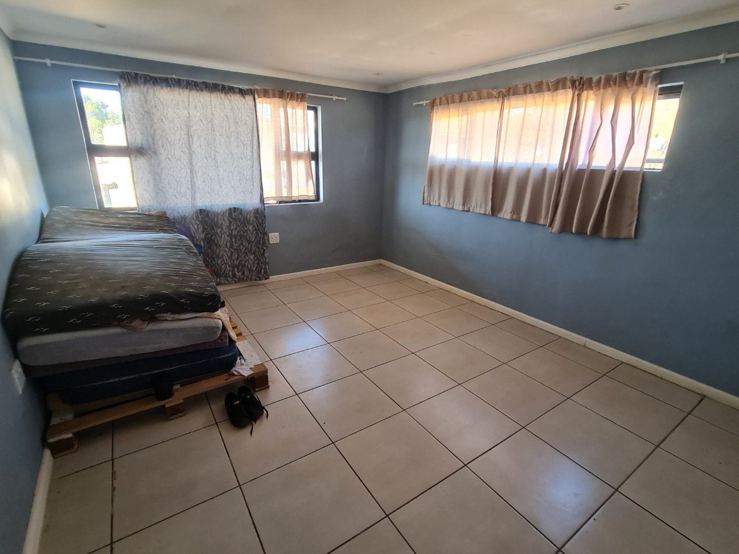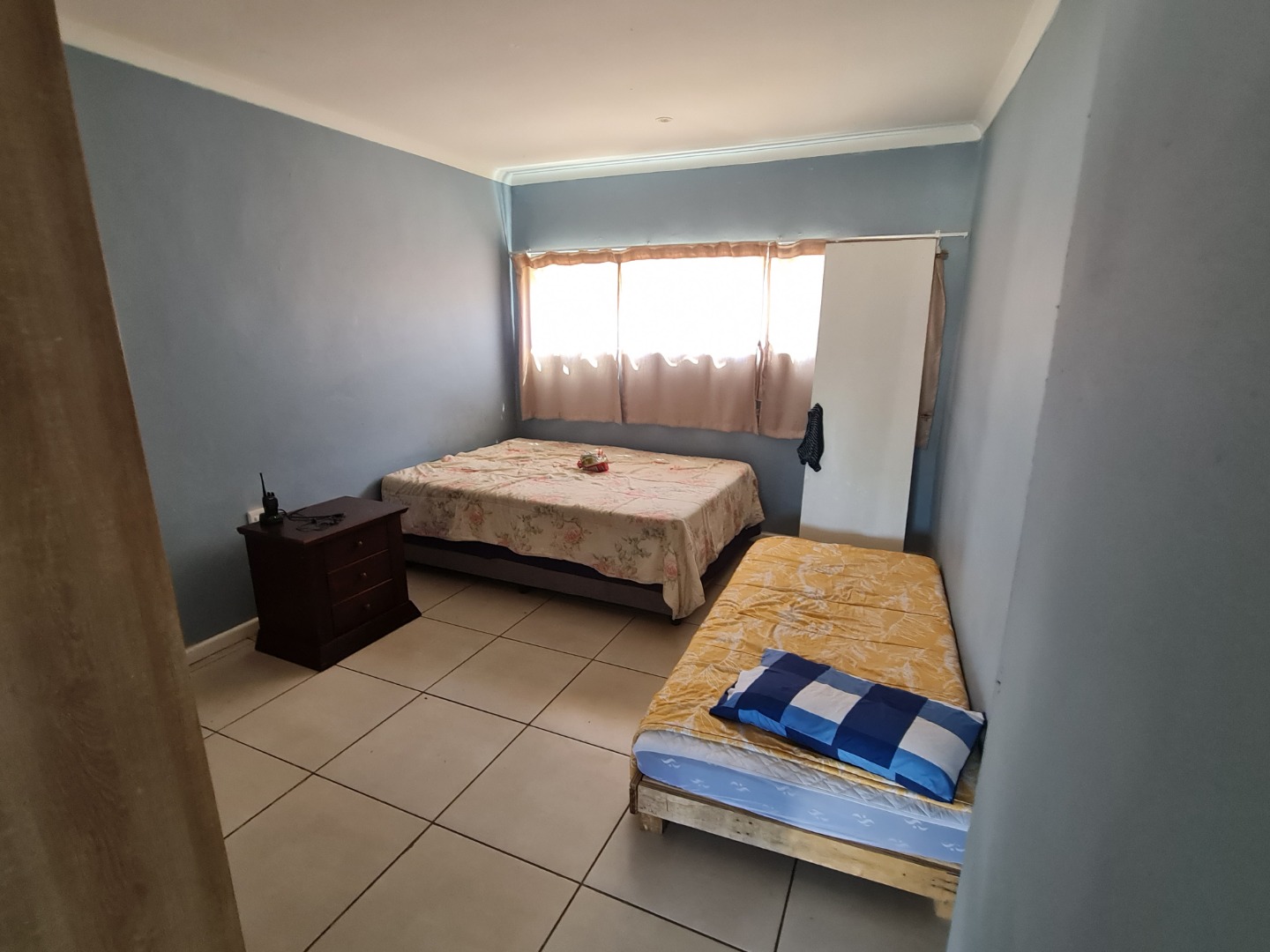 First House : 3 x bedrooms , 3 x bathrooms with build -in cupboards and tiled throughout .