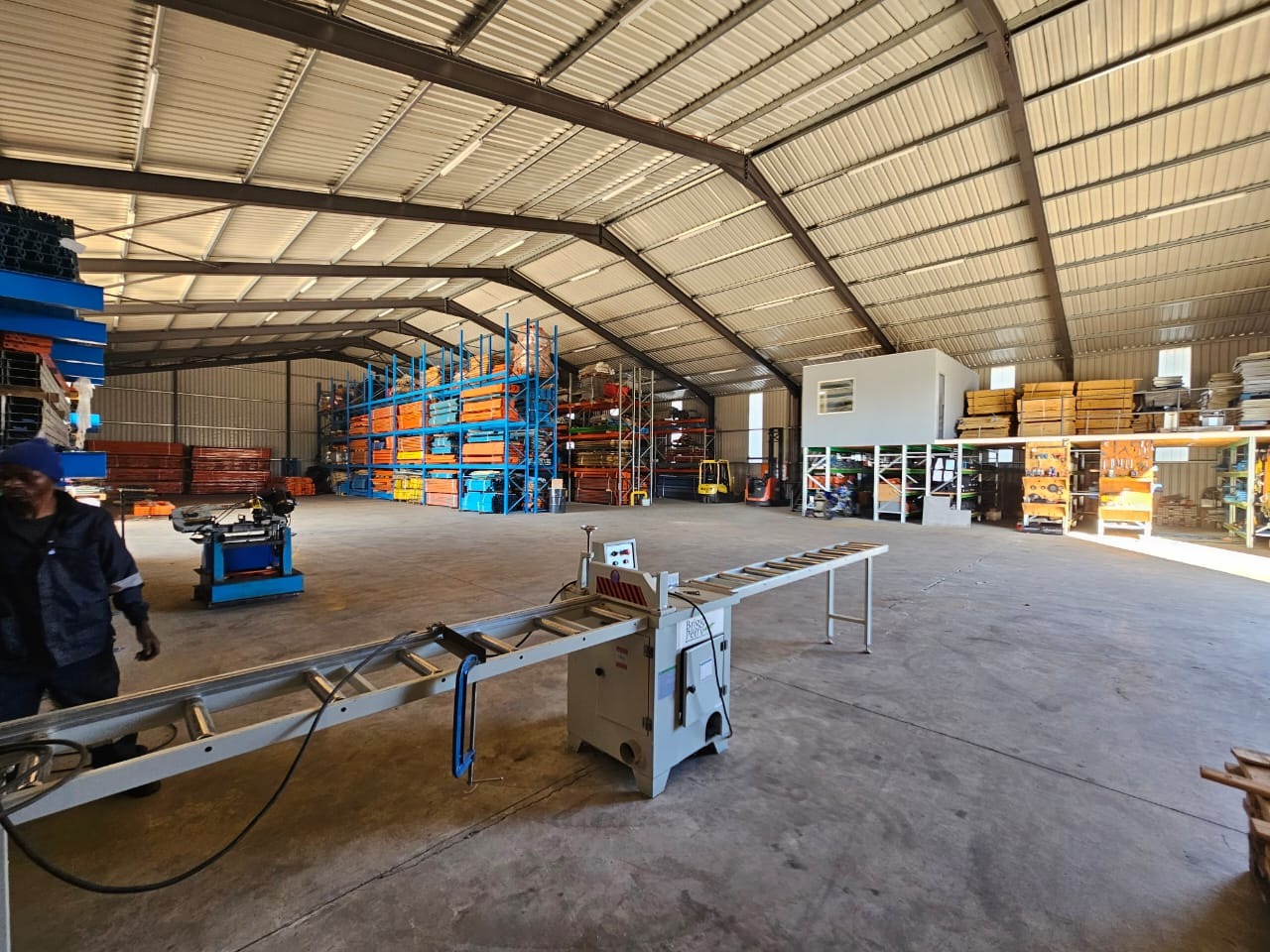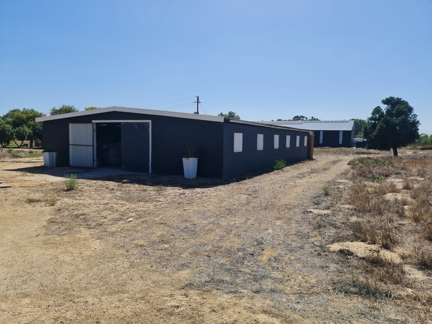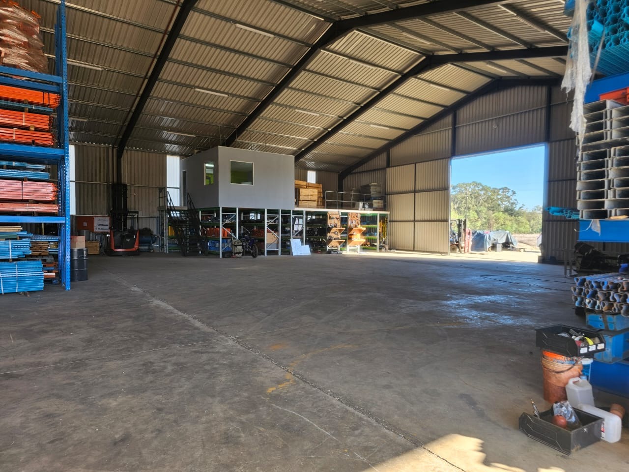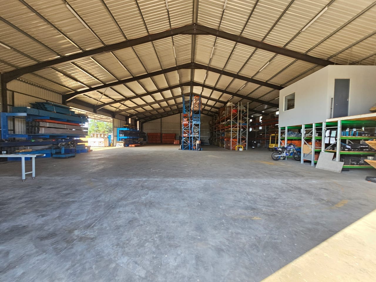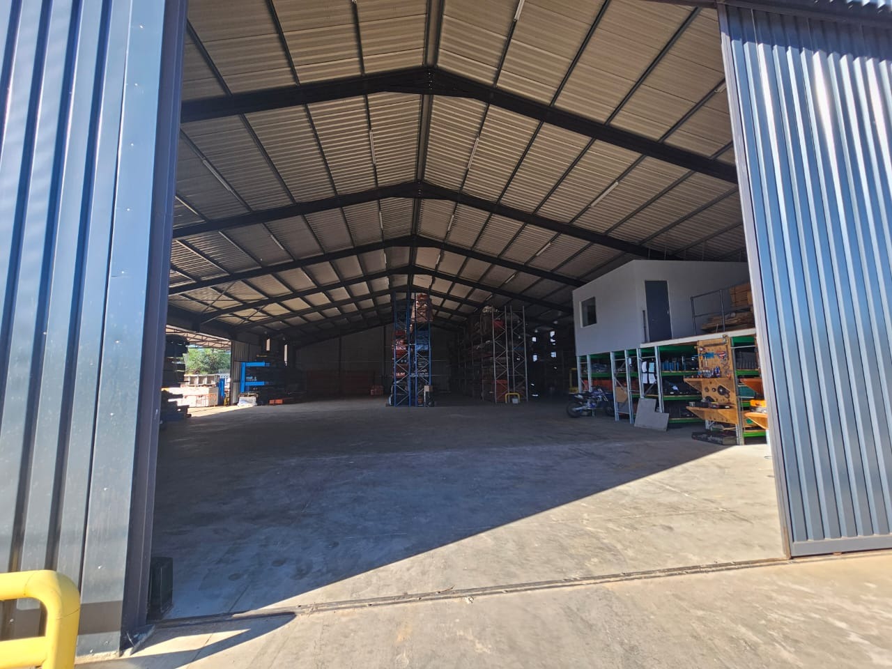 The Second Warehouse is 1000 sqm under roof , with a 6 meter door height and 7.5 m height to the pitch roof , 2000 sqm slab flooring .