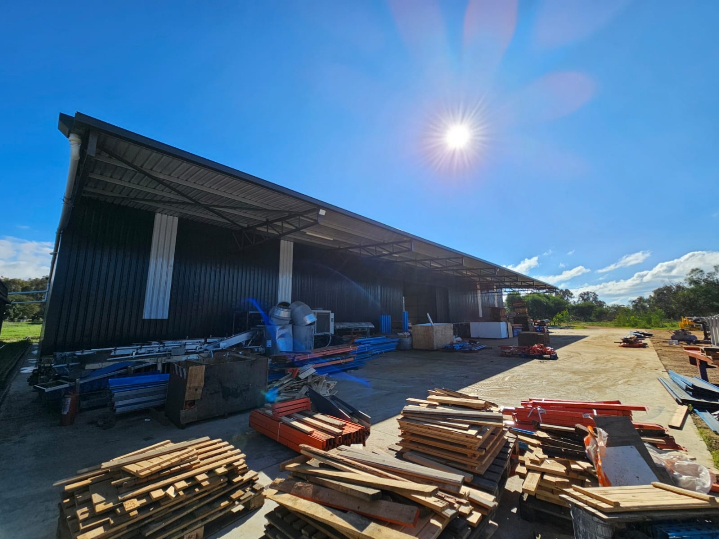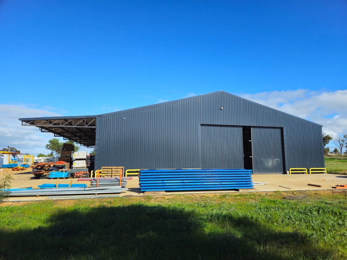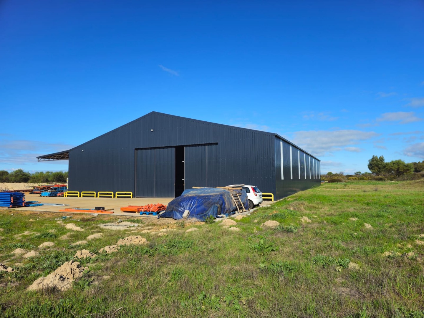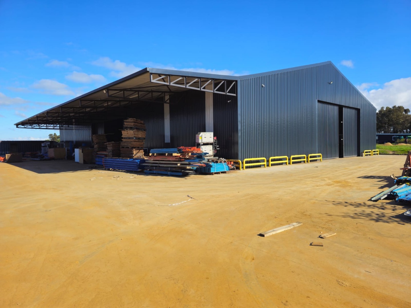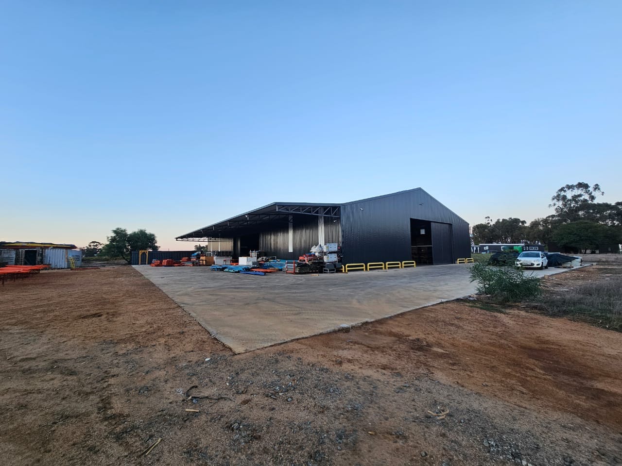 The Second Warehouse is 1000 sqm under roof , with a 6 meter door height and 7.5 m height to the pitch roof , 2000 sqm slab flooring .
