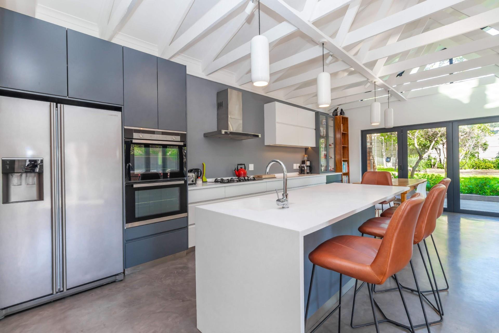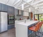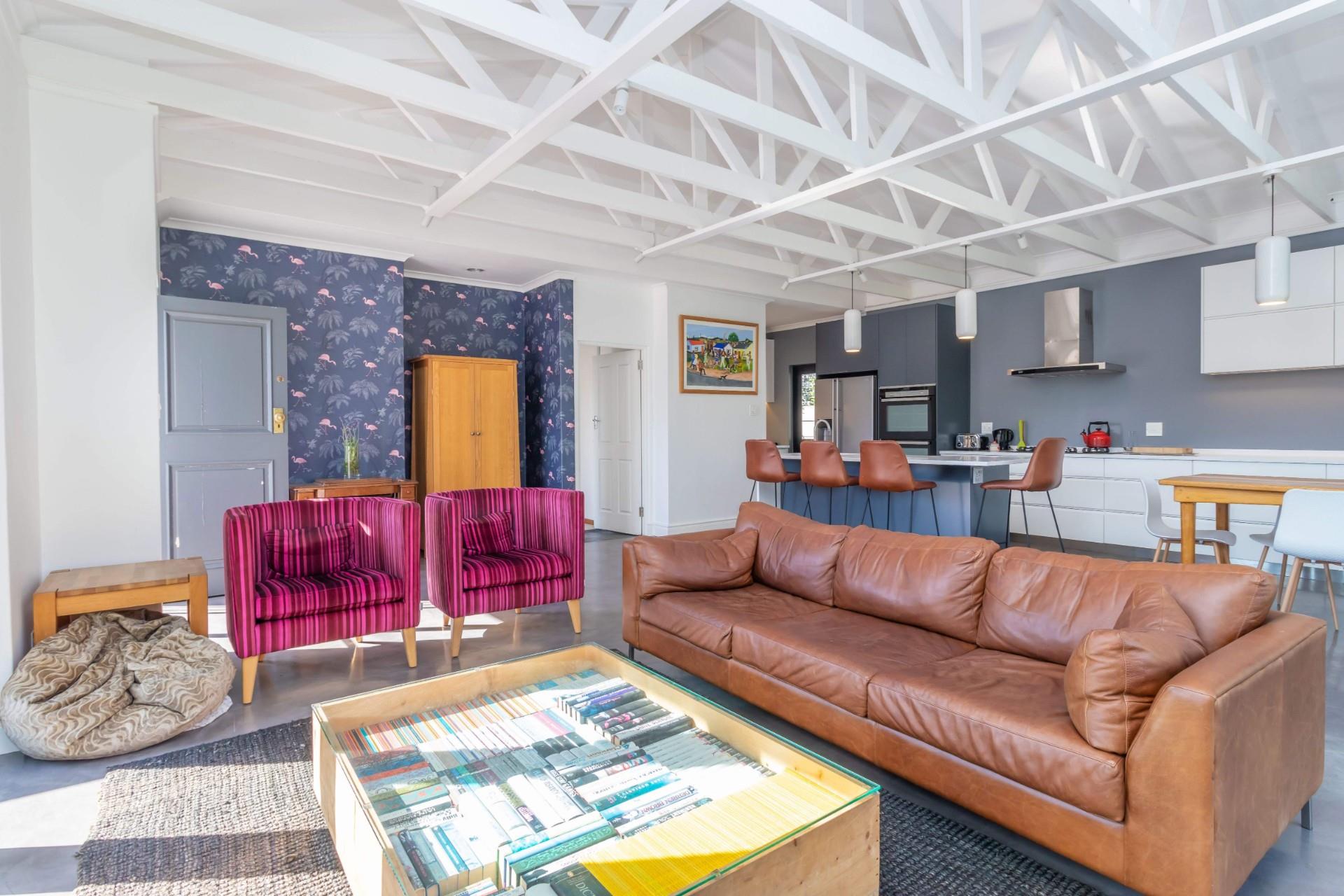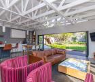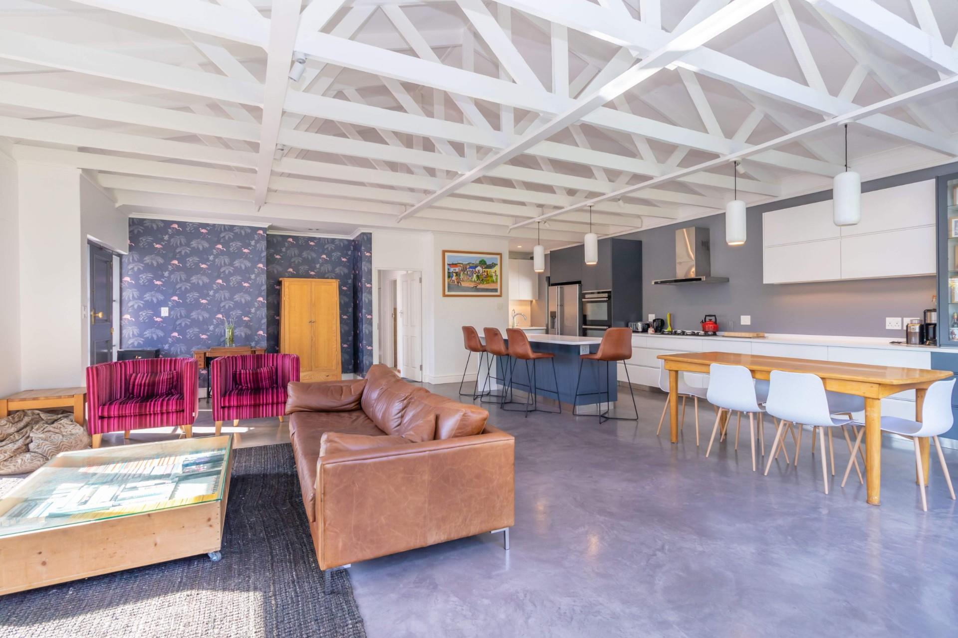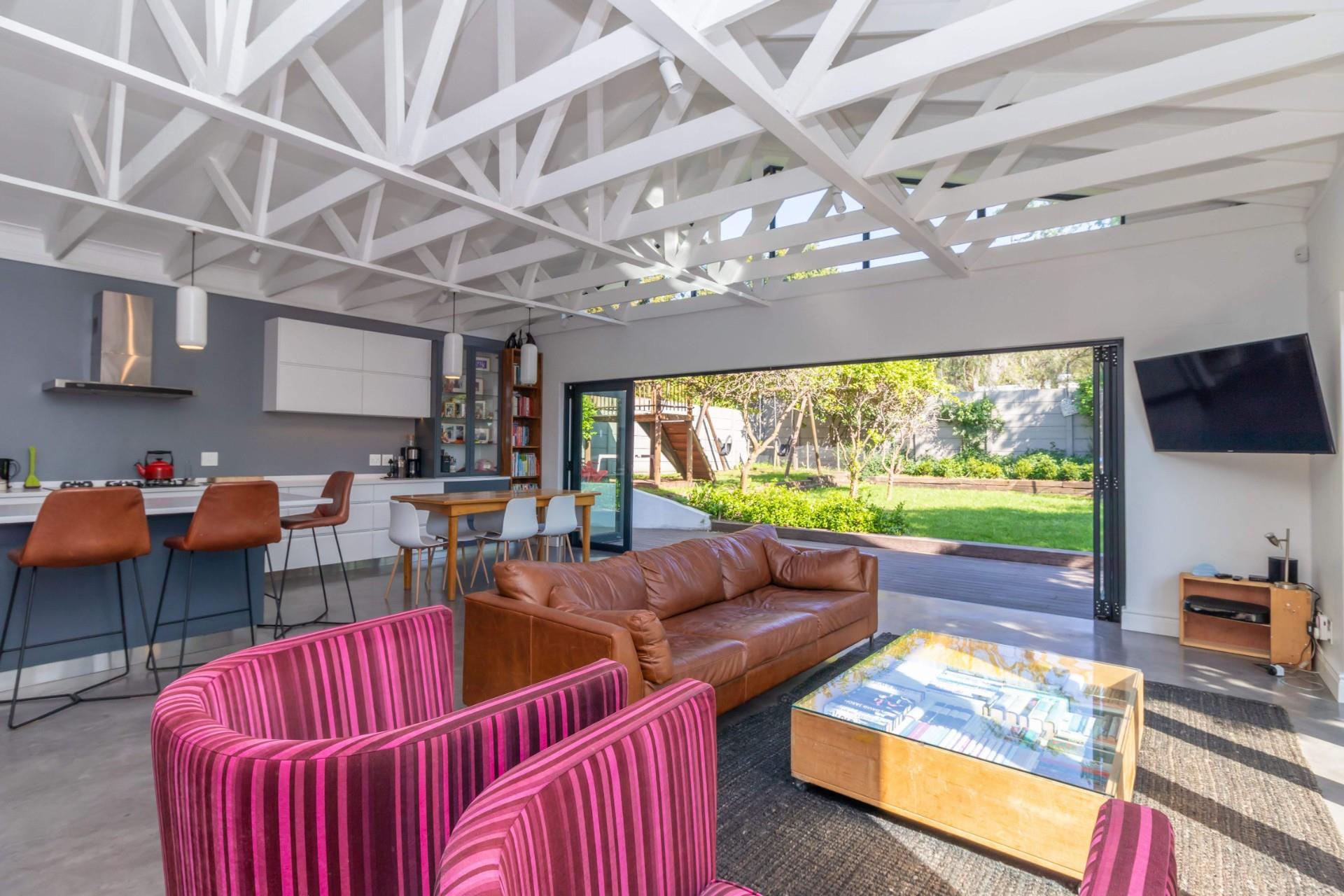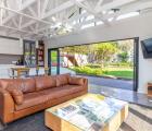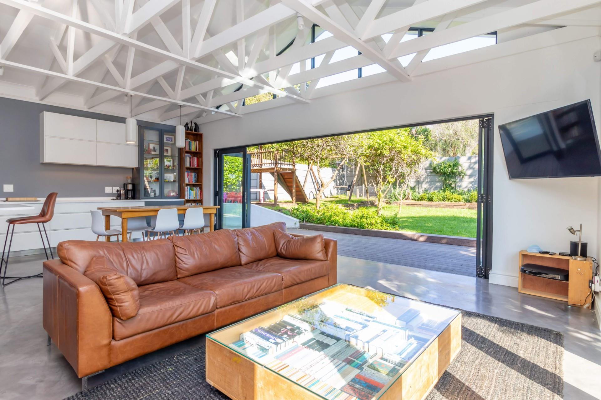 If you love entertaining this is the home for you, it offers open plan living at its best. A large living area with architectural beams and windows, a state of the art kitchen, concrete floors and folding aluminium doors opening onto a large deck and a manageable garden with the mountain as its backdrop.