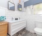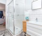 The master bedroom has an en-suite shower room with double basins and a toilet.