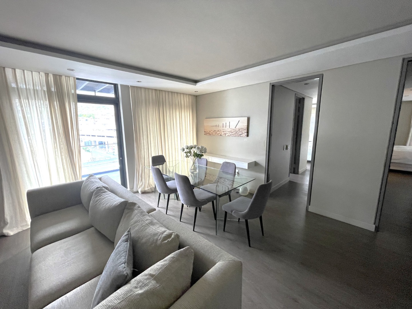 Perched at the foot of Table Mountain, this modern two-bedroom, two-bathroom apartment is designed for effortless city living.