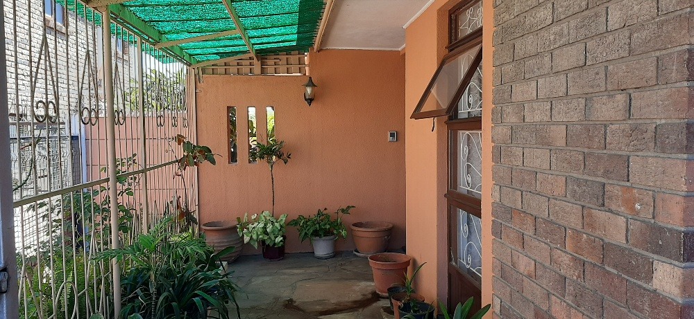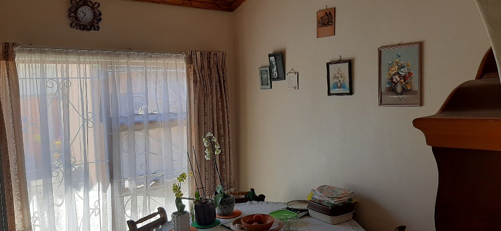 Neat well maintained property ready to move in. Enclosed patio leads into entrance hall and large lounge with high wooden ceiling and fire-place.