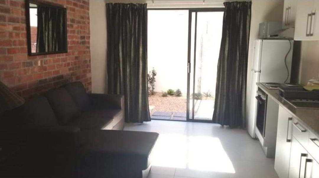 The interior boasts a sleek, open-plan design with modern, high-end finishes throughout. The kitchen is stylishly equipped with an oven, stove, and a plumbing point for convenience, while the bathroom features a chic glass walk-in shower. With ample built-in cupboards throughout the hallway, you’ll have no shortage of storage space. The property also offers one, secure and covered parking bay.