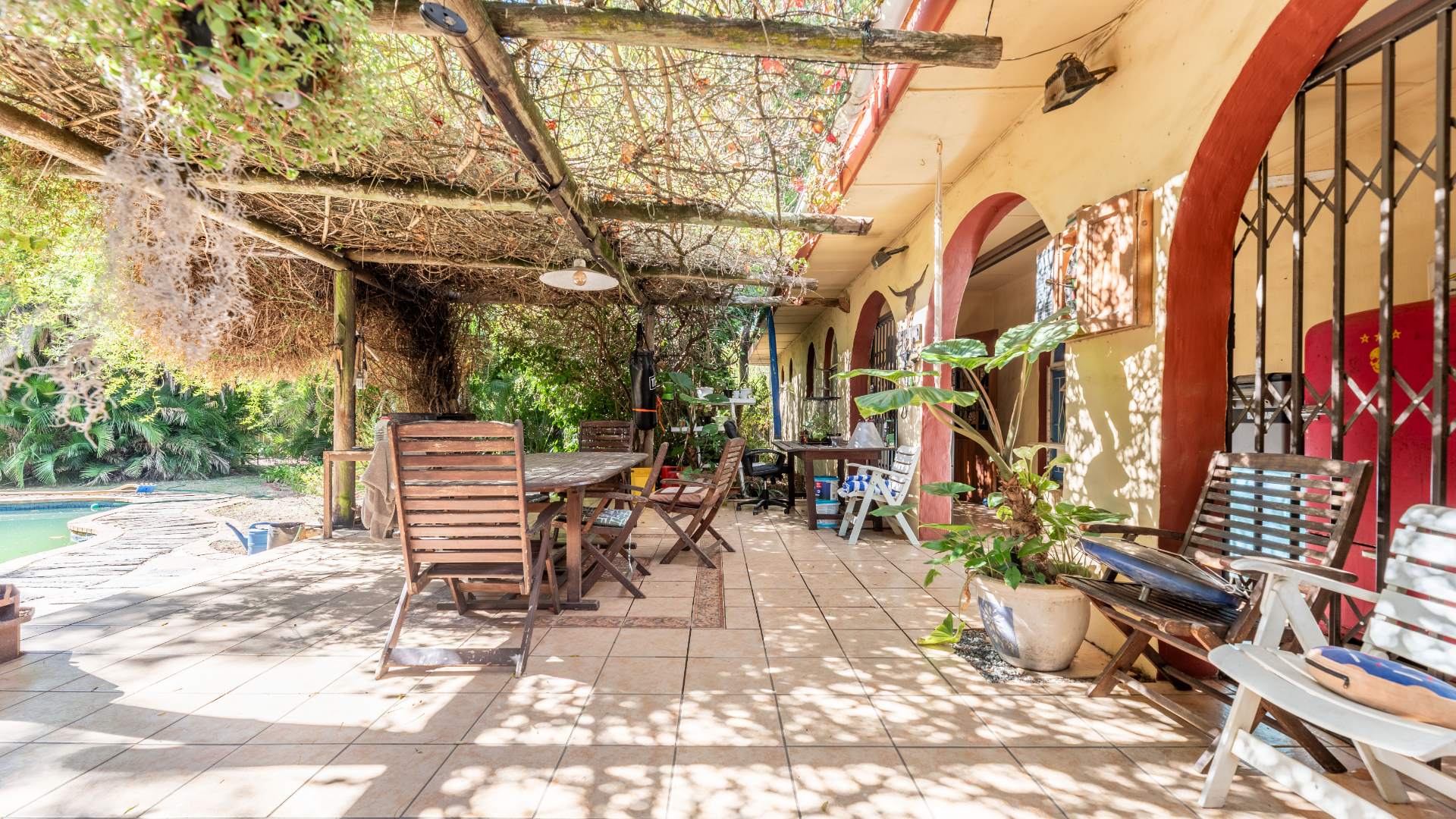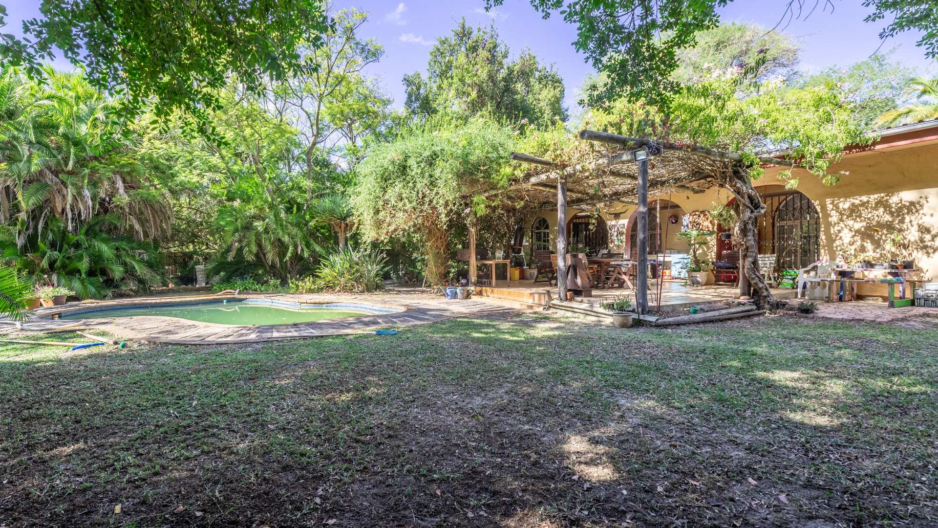 The main House offers a 3 bedroom, 2 bathrooms with an open plan lounge and dining room, and a separate kitchen area. Large lush established garden with swimming providing privacy from the road.