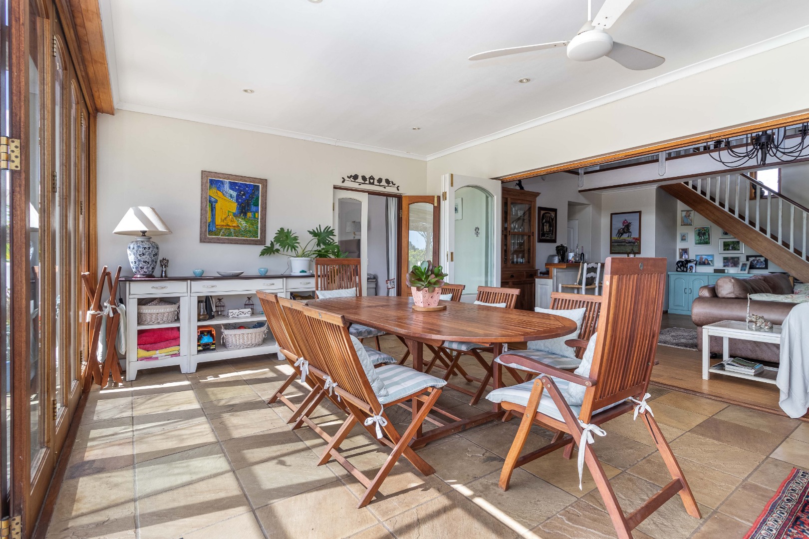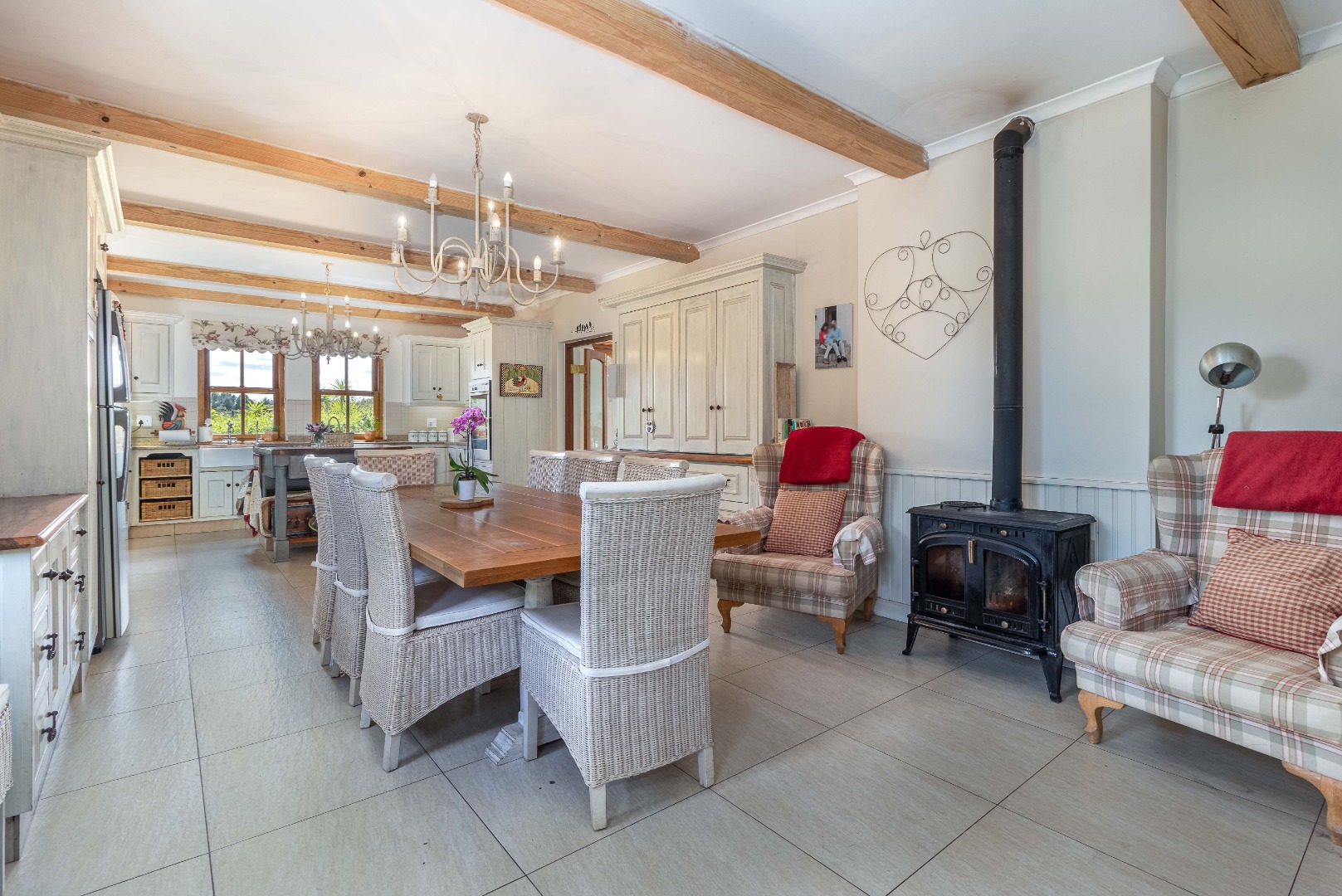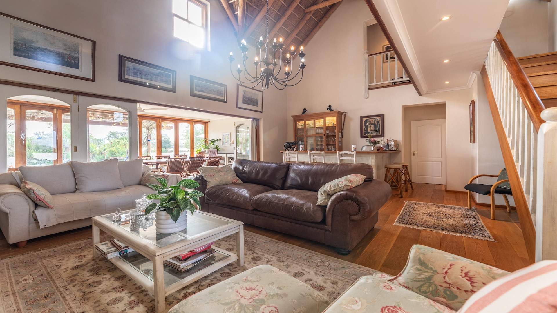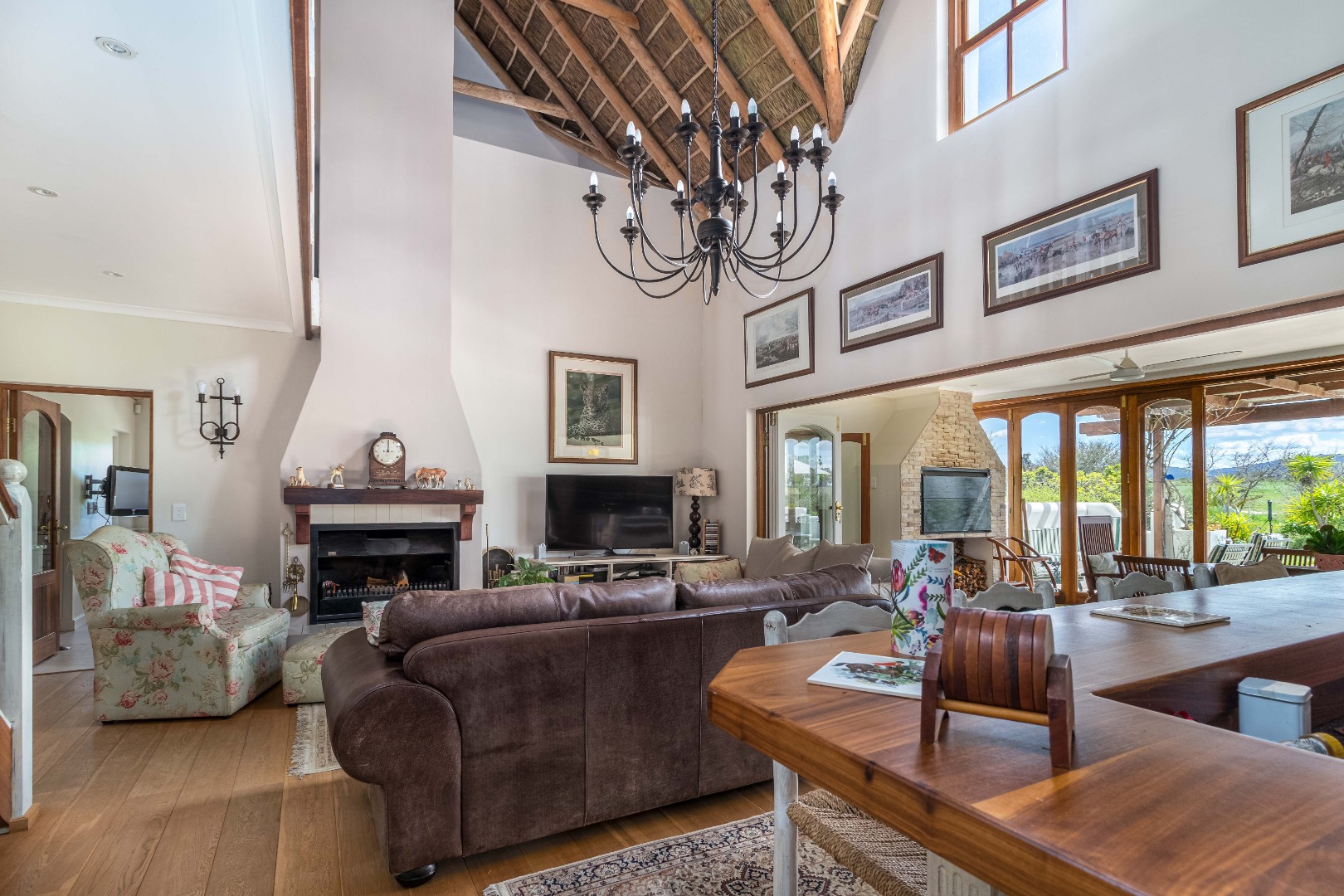 From the moment you step inside, you’re welcomed by an inviting fusion of classic character and modern functionality. The open-plan lounge, bar, dining area, fireplace, and indoor braai form a warm and social heart of the home—perfect for everyday family living and effortless entertaining.