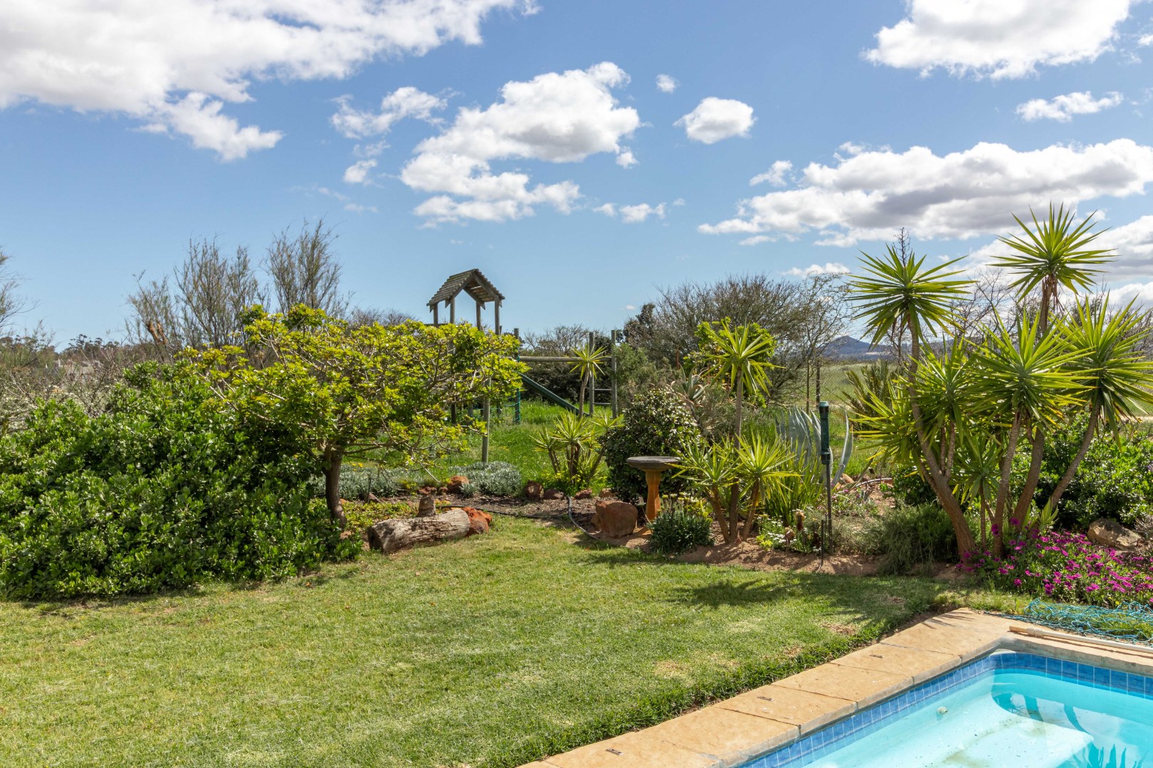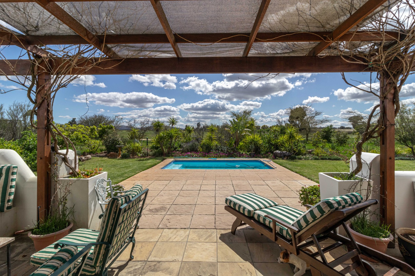 Outdoors, the beautifully established garden is a private sanctuary, complete with a sparkling swimming pool and a wind-sheltered entertainment area—ideal for year-round relaxation and hosting.