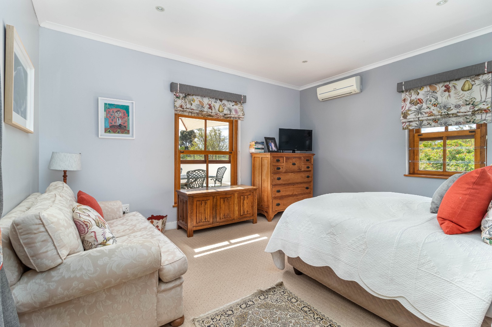 Energy-efficient living is ensured with a solar power system comprising 16 panels and an 8kVA inverter.