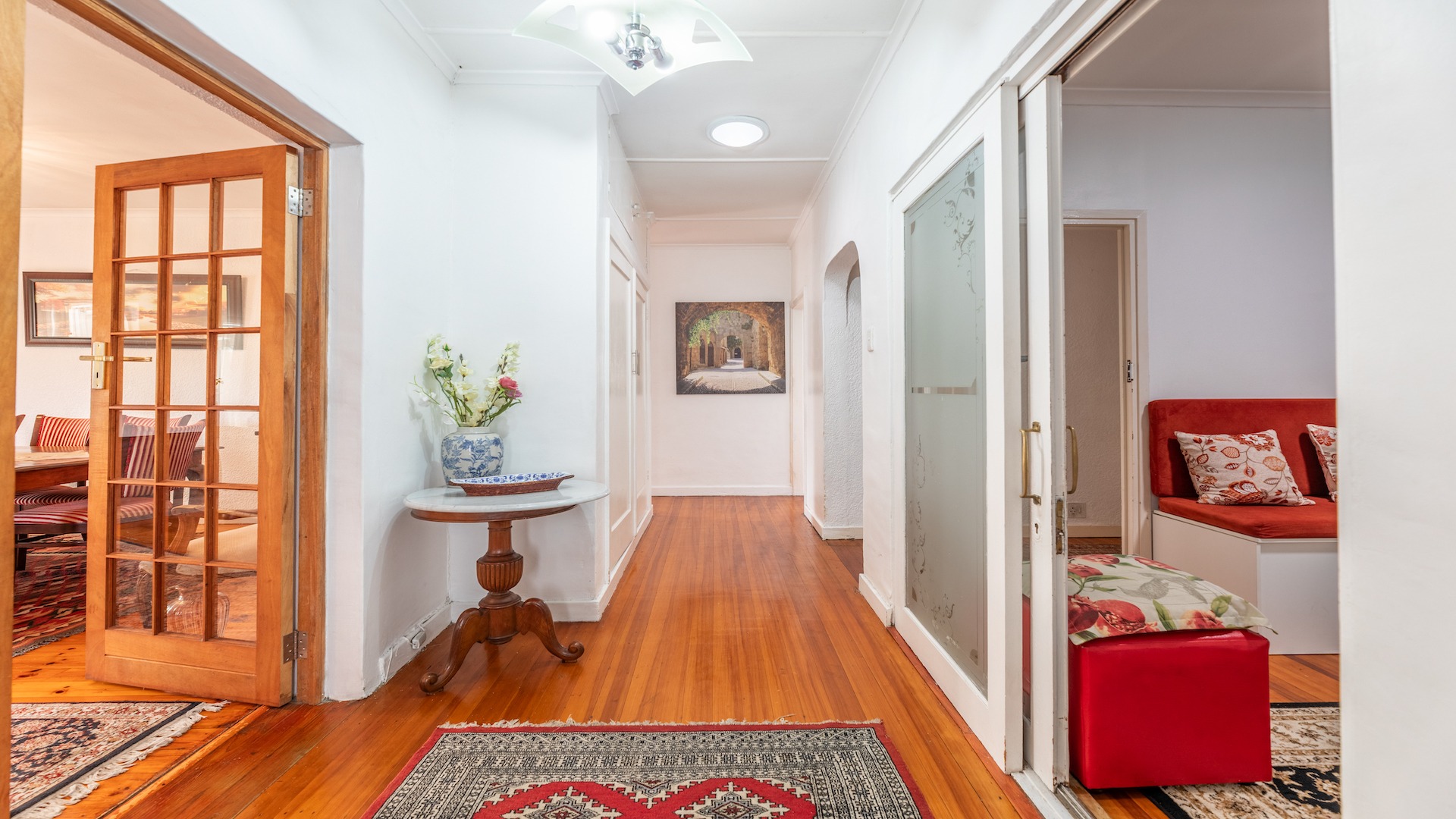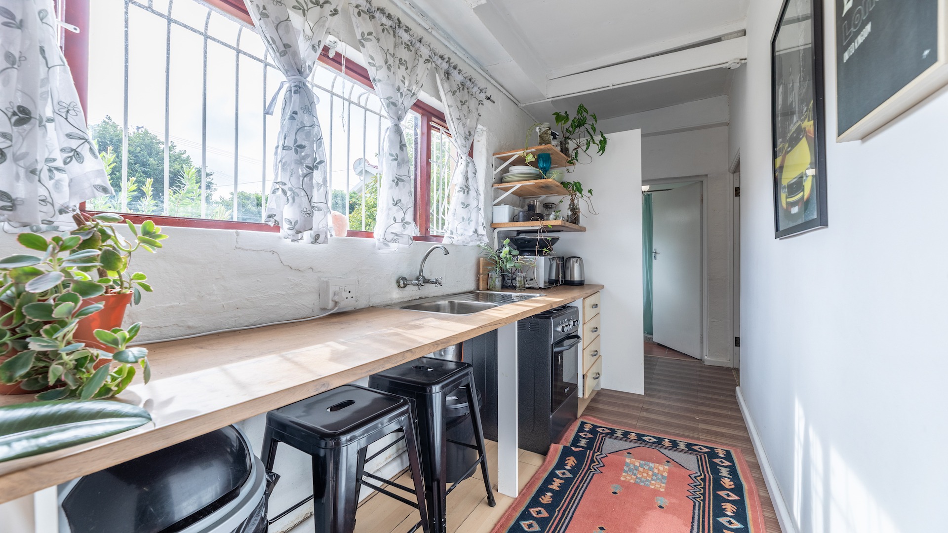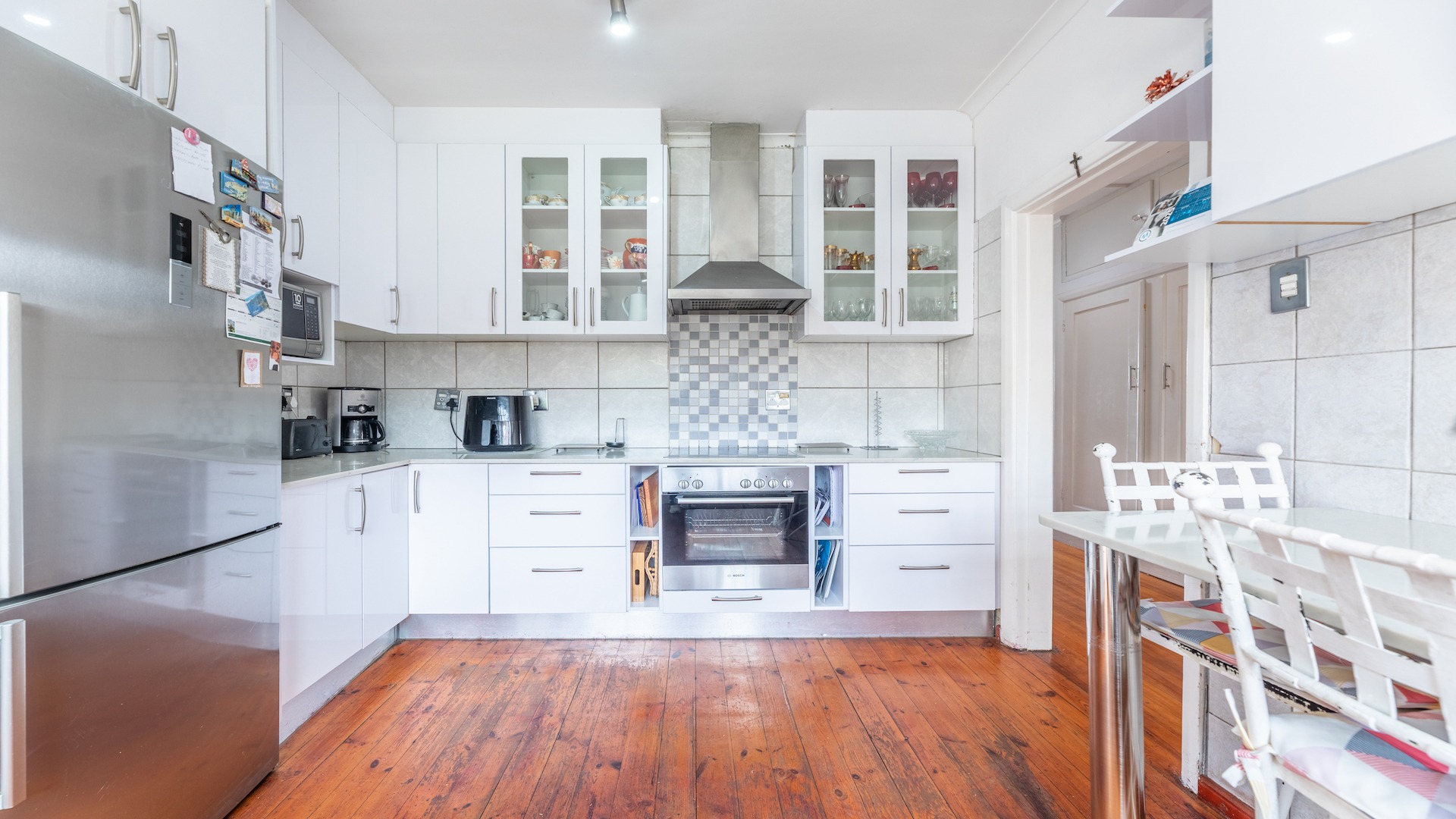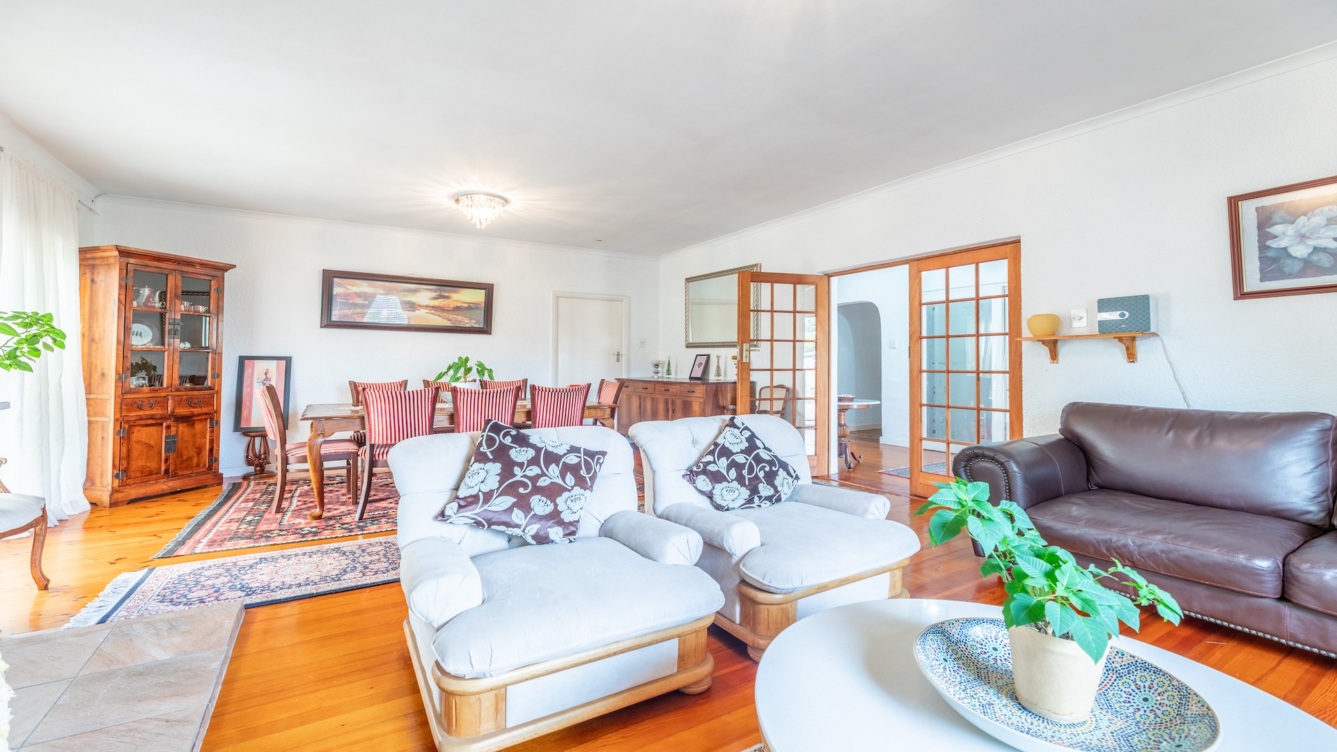 This charming home with its lofty ceilings and warm wooden floors, is tucked away in a quiet, Pinelands Road, in close proximity to The Red School and next to a park. In essence the perfect house for children, pets and the extended family!