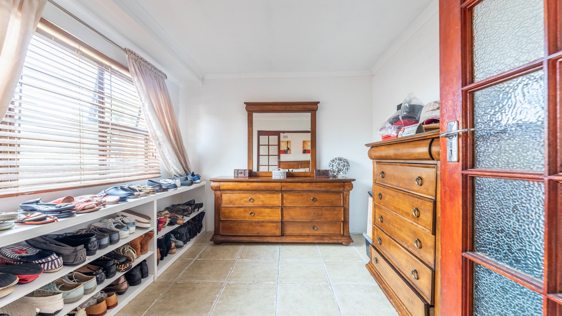 The main house celebrates three well sized bedrooms, each with built in cupboards. The spacious, primary bedroom includes a dressing room / study, as well as an en-suite bathroom. In addition to this, there is also a tiled, family bathroom as well as a separate guest toilet for your family's convenience.