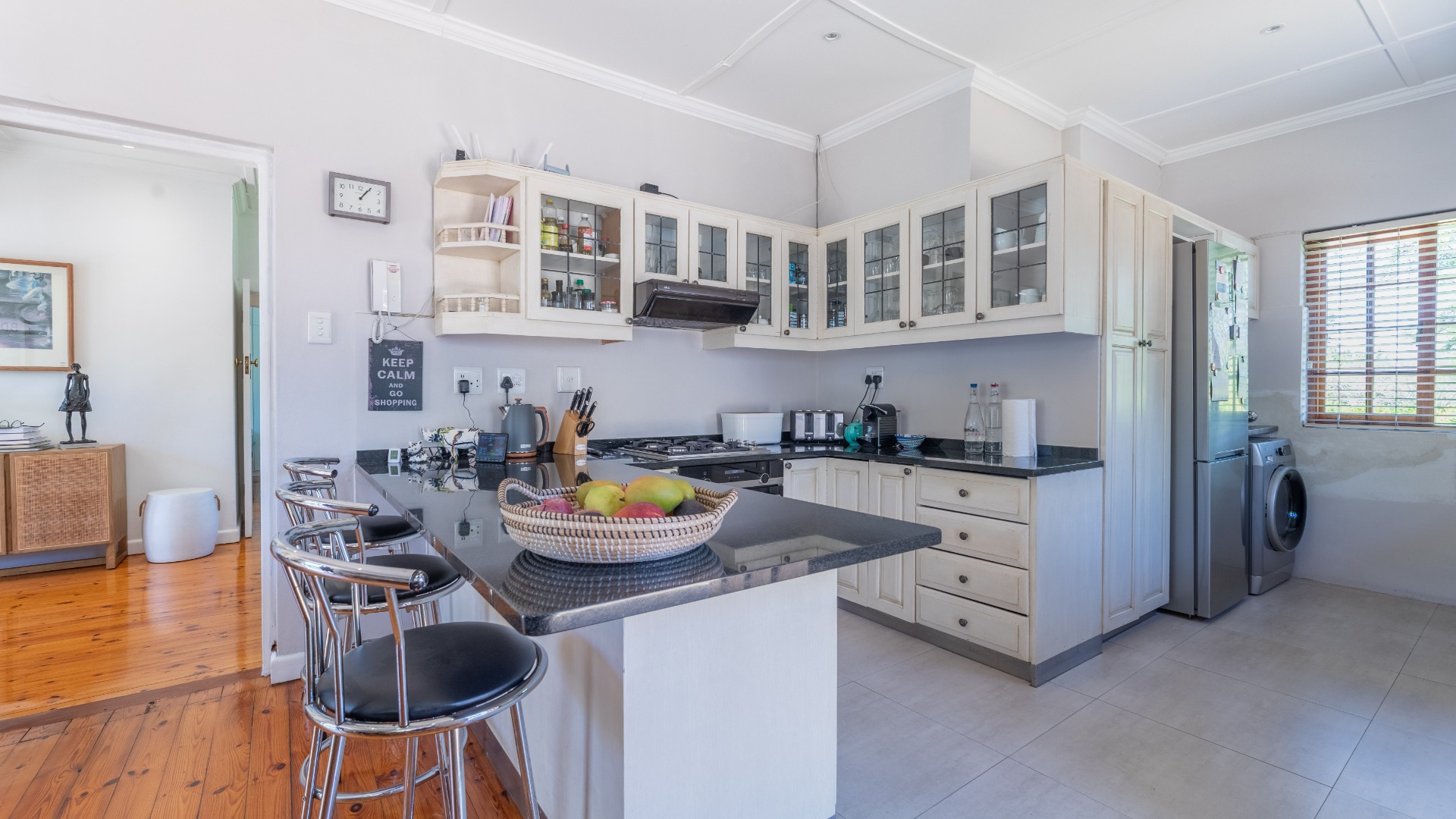 Security is well-addressed with an alarm system, electric fencing, an access gate, intercom, CCTV, burglar bars, and a security gate, providing peace of mind. Environmentally conscious features include solar panels and a battery inverter, contributing to energy efficiency. Enjoy scenic views of Table Mountain from various points of the property, enhancing its appeal. This suburban setting offers a tranquil lifestyle within easy reach of city amenities.