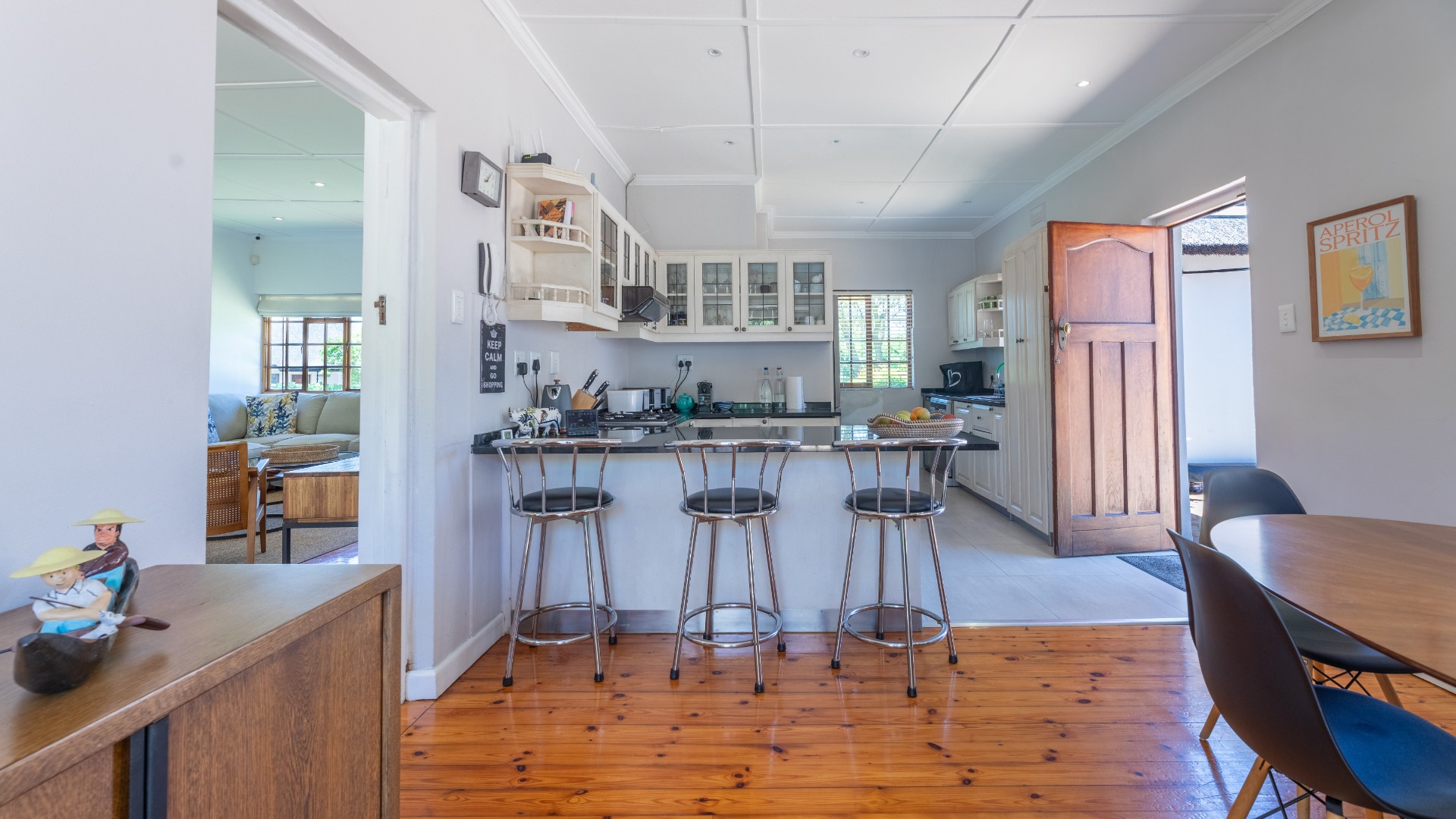 Discover this inviting 4-bedroom, 2-bathroom residence nestled in the desirable suburban area of Pinelands, Cape Town. Spanning a generous 200 sqm under roof on a 1209 sqm erf, this home offers ample space for comfortable family living. The interior features a layout, enhancing the flow between the lounge, dining room, and kitchen, which is well-equipped for daily needs. Special doors and sliding doors contribute to the home's aesthetic and functionality, while a cozy gas fireplace adds warmth and ambiance.